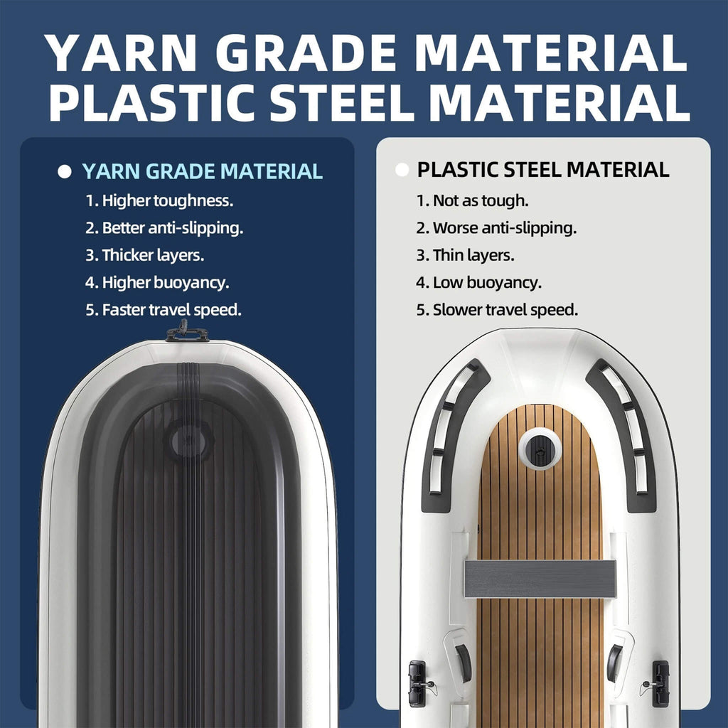 - Made from heavy-duty, puncture-resistant materials, this inflatable dinghy is built to handle rough waters and tough conditions. With reinforced seams and a sturdy design, it ensures safety and longevity, so you can confidently explore even the more demanding routes.