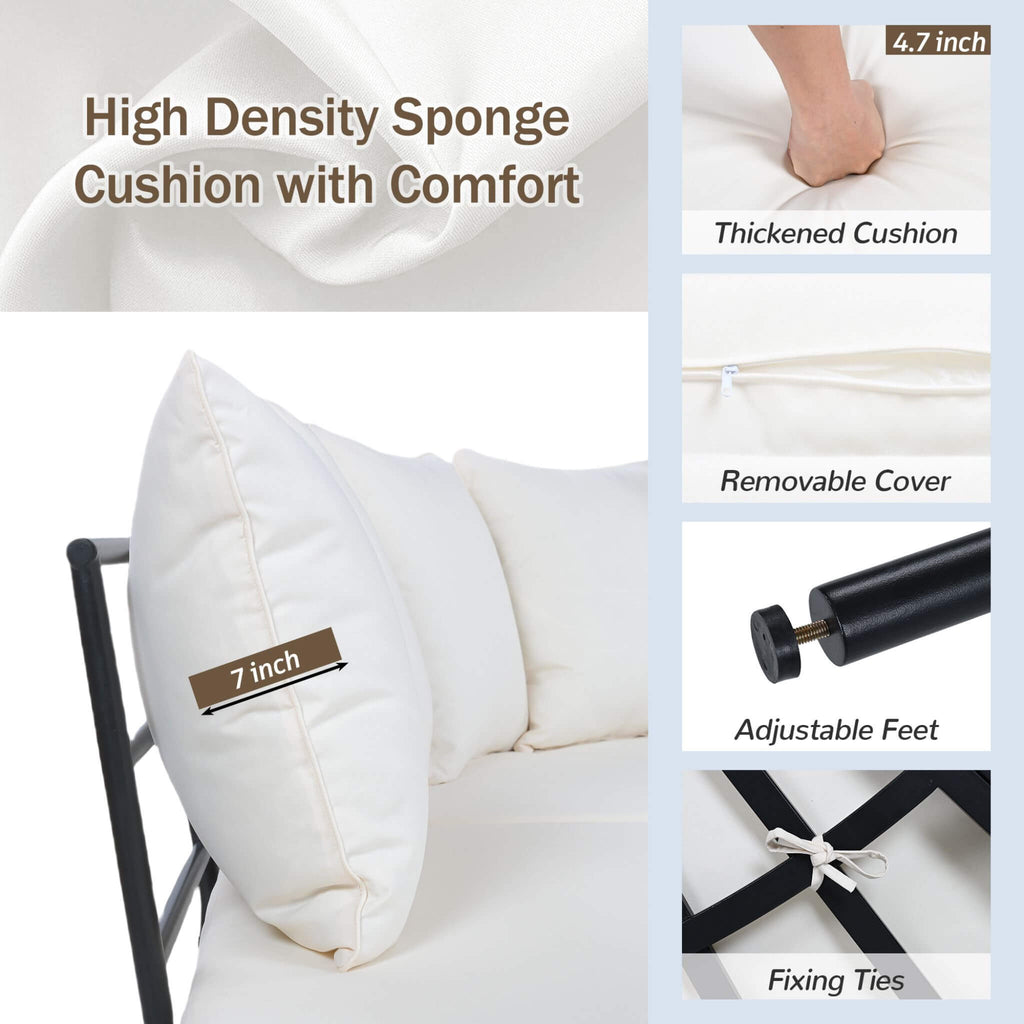 - The 4.72-inch thick, plush cushions with waterproof and stain-resistant properties provide a cozy, luxurious experience fit for outdoor lounging or lively gatherings.
