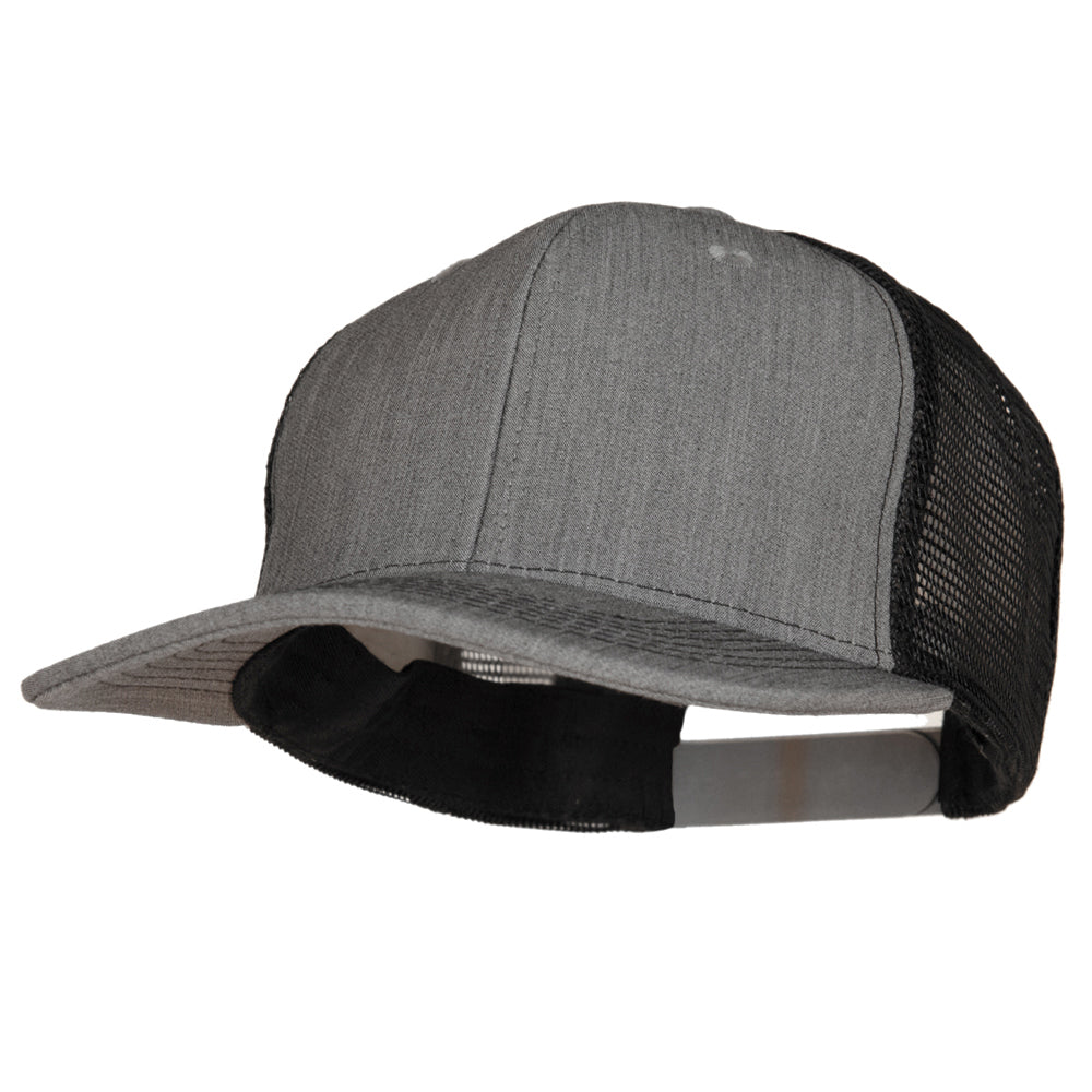 Product Type, Premium Heather High Profile Mesh Trucker Cap.