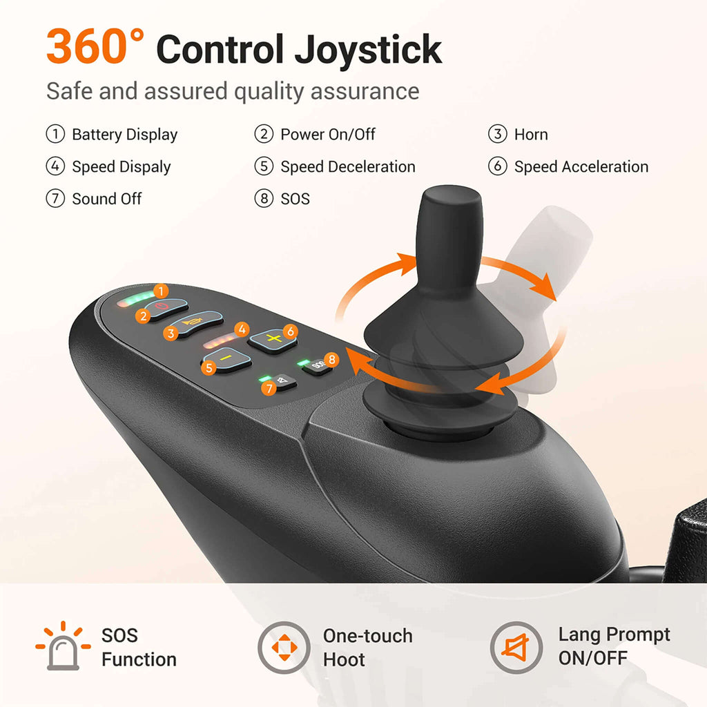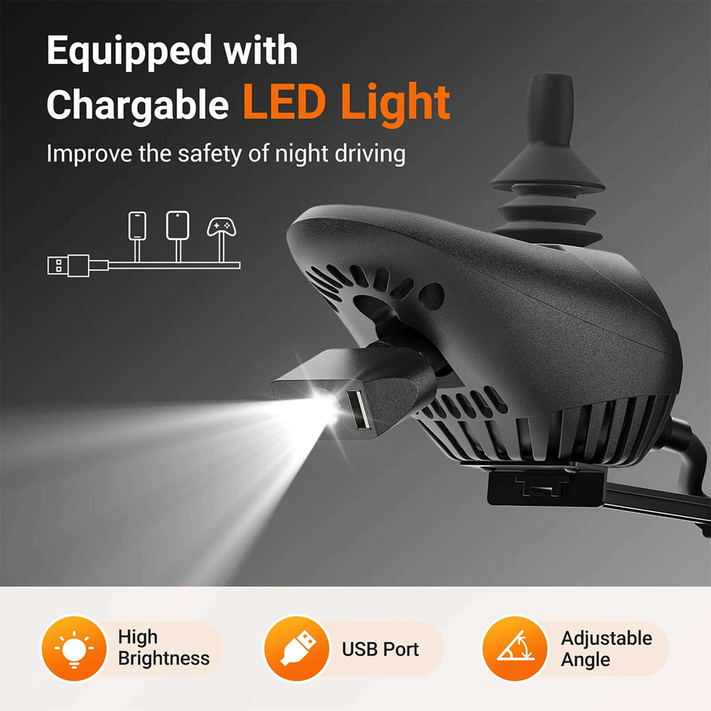 - Navigate easily with a 360° intelligent joystick and stay visible with a built-in LED headlight for nighttime outings.
