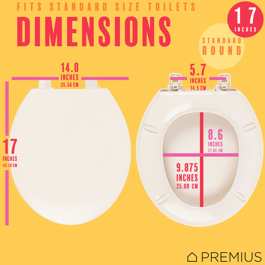 - Secure Fit: The standard round size and plastic hinges ensure a perfect and secure fit on your toilet. The plastic bumpers prevent the seat from shifting during use and add stability.