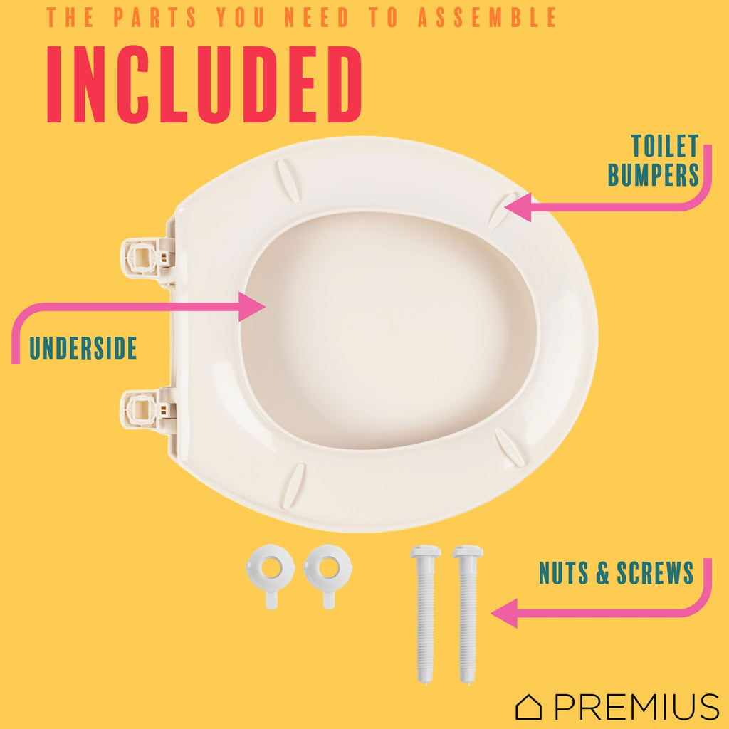 Upgrade Your Bathroom with the PREMIUS Beveled Plastic Toilet Seat! Its sleek and modern, stylish design and comfortable features make it a perfect addition to any bathroom. Plastic bumpers prevent the seat from shifting during use and add stability. Features plastic hinge covers for easier cleaning and nylon screws for added strength.