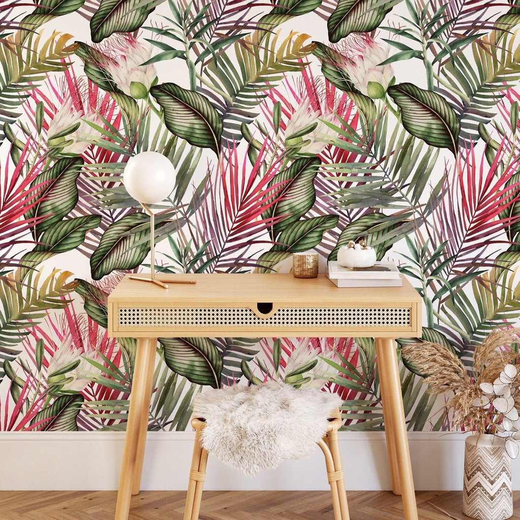 Dress up your naked walls with our Red and Green Tropical Leaves Wallpaper. The vibrant colors and lush foliage will add a touch of exotic beauty to any room, making it the perfect backdrop for relaxation and entertainment. Bring the tropics to your home today!