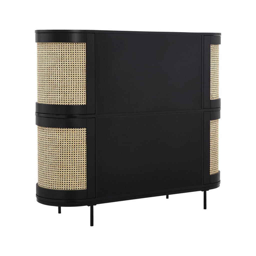 - ATTRIBUTES: 4-Door, Stemware Rack, 5 Bottles Wine Rack, Storage, Rattan Imitation
