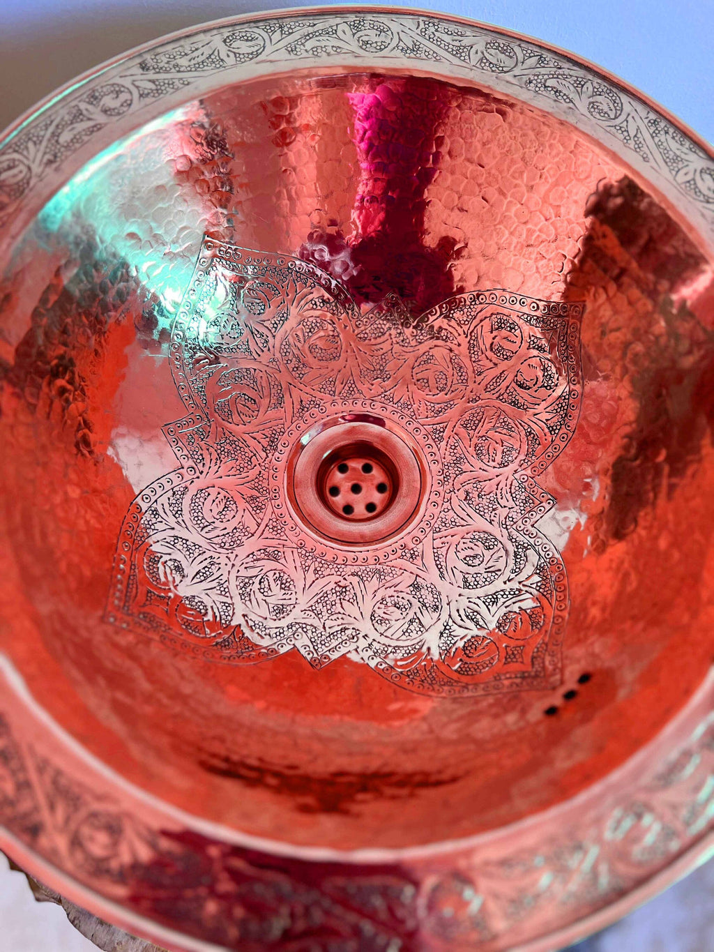Introducing the stunning Moroccan Round brass sink, a true masterpiece of craftsmanship and design. Handmade by skilled artisans, this sink is truly one-of-a-kind,
