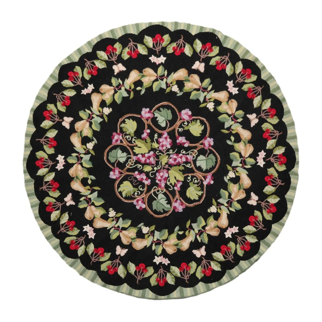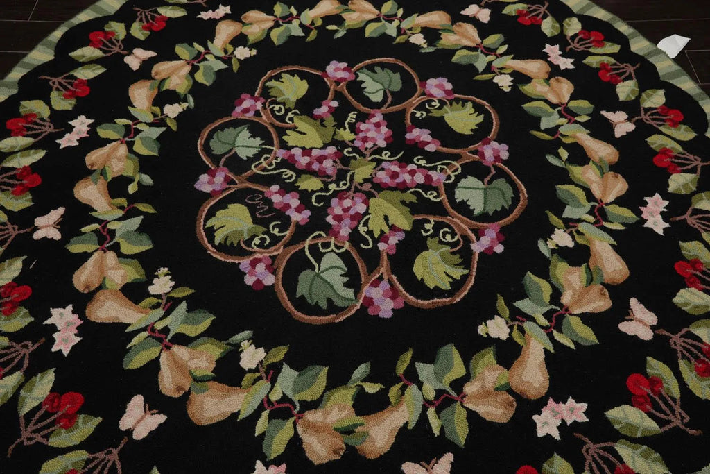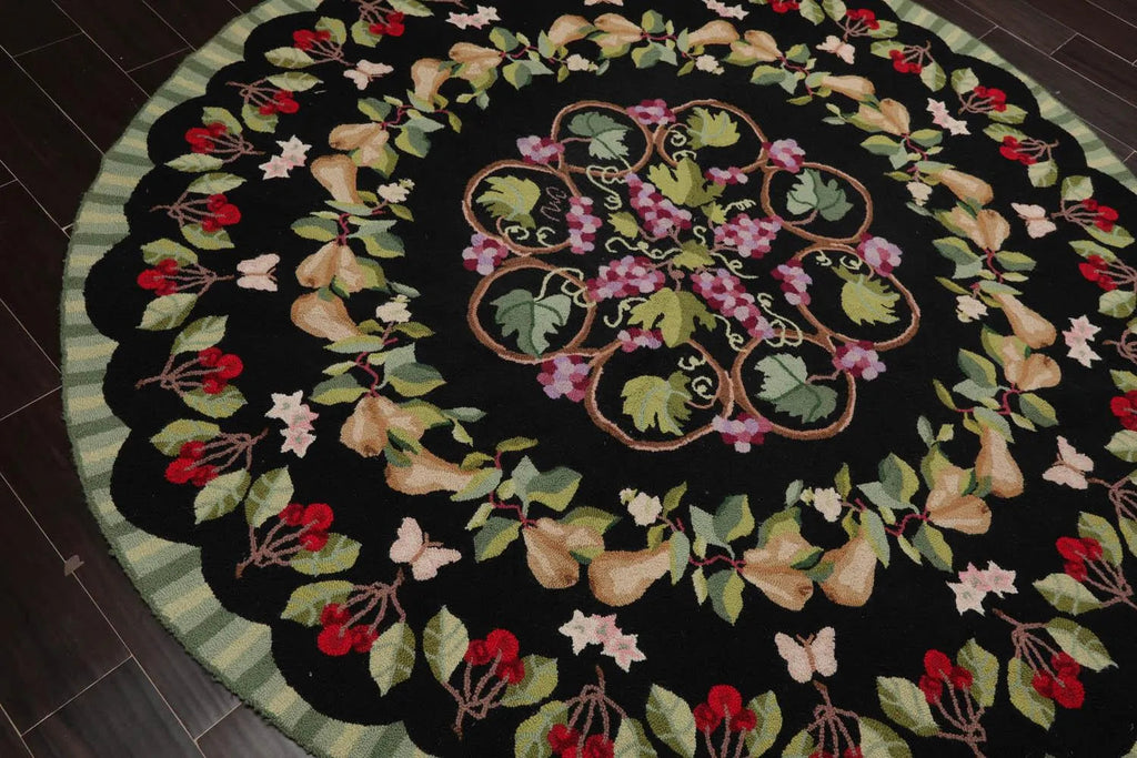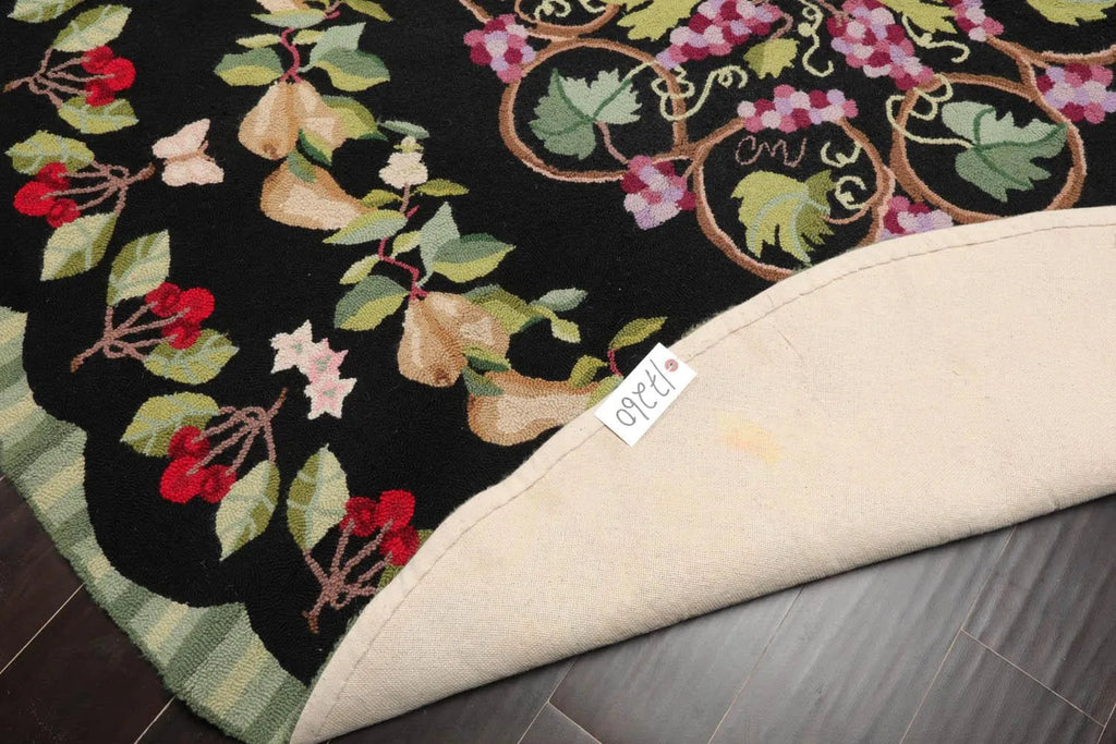 This is a beautiful Black, Sage, Mint Color Hand Hooked, Hand Made Oriental 100% Wool Rug.