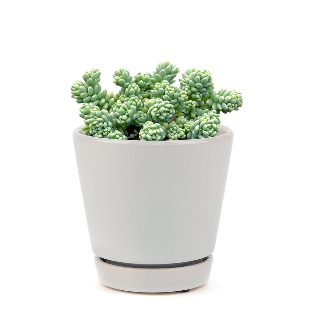 Sedum Dasyphyllum Major, also known as Corsican Stonecrop or Blue Tears Sedum, is a quick-to-grow evergreen succulent. This little ground cover sedum features adorable blue-green foliage with long branching stems and tiny round leaves. Sedum Dasyphyllum Major can withstand light foot traffic, making it an excellent low-water lawn substitute. You can trim it back to create a dense mat and leave the trimmings to root & grow into new plants.