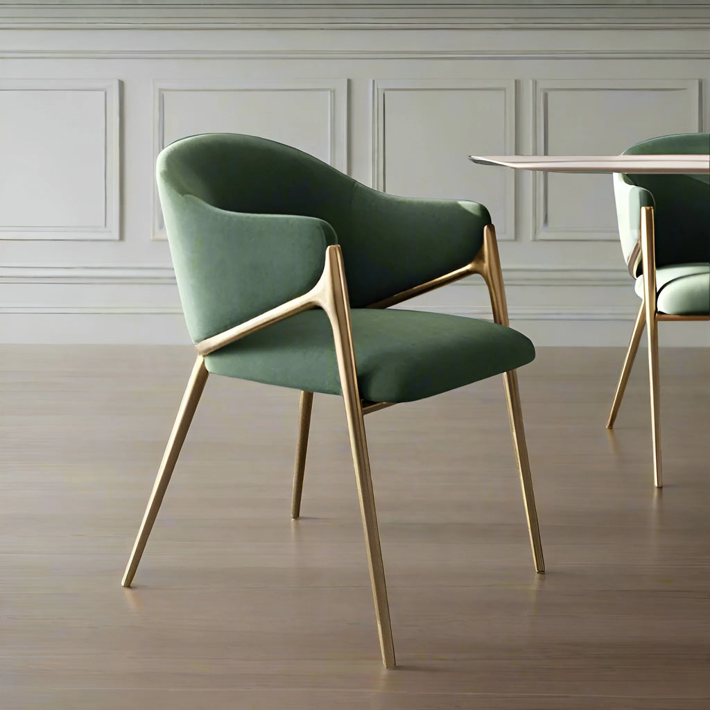 The Light Luxury Postmodern Minimalist Dining Chair combines a postmodern silhouette with practical comfort, making it as inviting as it is striking. With its sturdy base and refined shape, this minimalist chair brings a structured yet approachable look to the dining room.