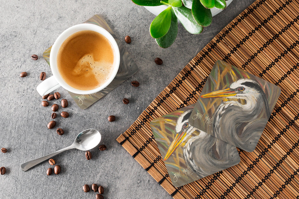Blue Heron Coasters - Set of 4 Lightweight Foam, Absorbent Drink Coasters JMK1229FC