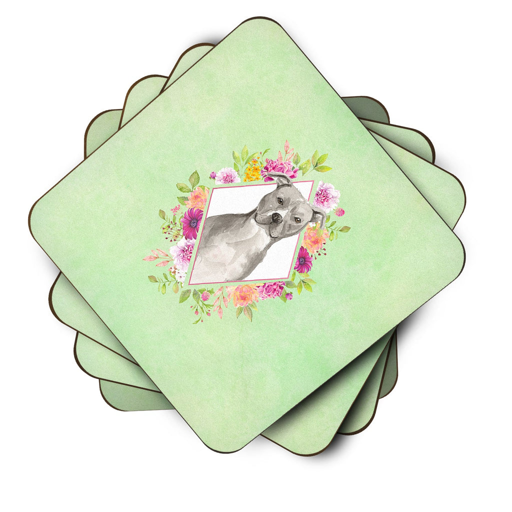 Decorate your space with our Pit Bull Terrier artwork on a Coaster set. Presenting our Set of 4 Foam Coasters, a stylish and practical addition to your table setting. Each square coaster, measuring 3 1/2 inches by 3 1/2 inches, is perfectly sized to accommodate various drinkware, from coffee mugs to tumblers. These coasters stand out with their full-color artwork, permanently dyed onto the material for a vibrant and fade-resistant finish. They're not just functional, they're a fashionable statement, adding a touch of flair to any gathering or event. Our foam coasters serve a dual purpose - they protect your table from water stains and are perfect for both hot and cold drinks. The material used is similar to that of our high-quality mouse pads, ensuring durability and heat resistance. These coasters are easy to maintain - simply wash them in the top of your dishwasher and lay flat to dry. The design won't come off, ensuring they retain their vivid colors for years. Pair them with one of our insulated coolers or huggers for a cohesive, thoughtful gift set. Enhance your beverage experience with our Set of 4 Foam Coasters.