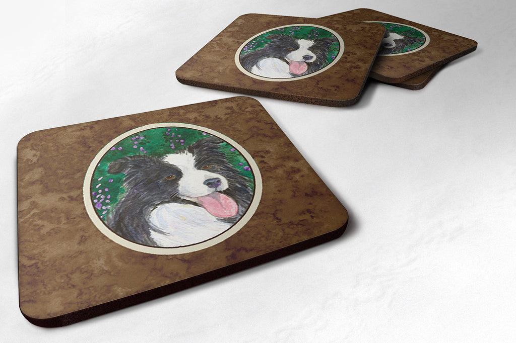 Decorate your space with our Border Collie artwork on a Coaster set. Presenting our Set of 4 Foam Coasters, a stylish and practical addition to your table setting. Each square coaster, measuring 3 1/2 inches by 3 1/2 inches, is perfectly sized to accommodate various drinkware, from coffee mugs to tumblers. These coasters stand out with their full-color artwork, permanently dyed onto the material for a vibrant and fade-resistant finish. They're not just functional, they're a fashionable statement, adding a touch of flair to any gathering or event. Our foam coasters serve a dual purpose - they protect your table from water stains and are perfect for both hot and cold drinks. The material used is similar to that of our high-quality mouse pads, ensuring durability and heat resistance. These coasters are easy to maintain - simply wash them in the top of your dishwasher and lay flat to dry. The design won't come off, ensuring they retain their vivid colors for years. Pair them with one of our insulated coolers or huggers for a cohesive, thoughtful gift set. Enhance your beverage experience with our Set of 4 Foam Coasters.