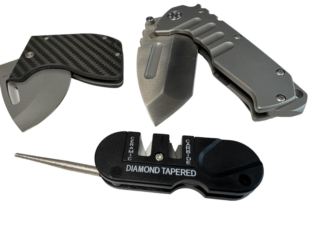 Introducing the SharpTrio Pocket Knife Sharpening Tool, a must-have for every outdoor enthusiast. Its compact and user-friendly design makes it an essential addition to any pack. Experience the unparalleled convenience and efficiency of this sharpener, and you'll quickly find yourself wanting more for personal use and gifting. Don’t be deceived by the low price—this tool delivers exceptional performance.
