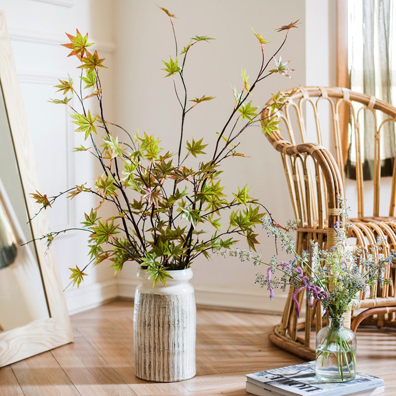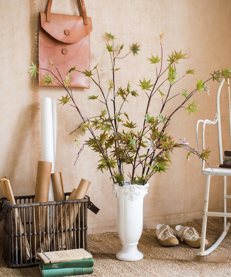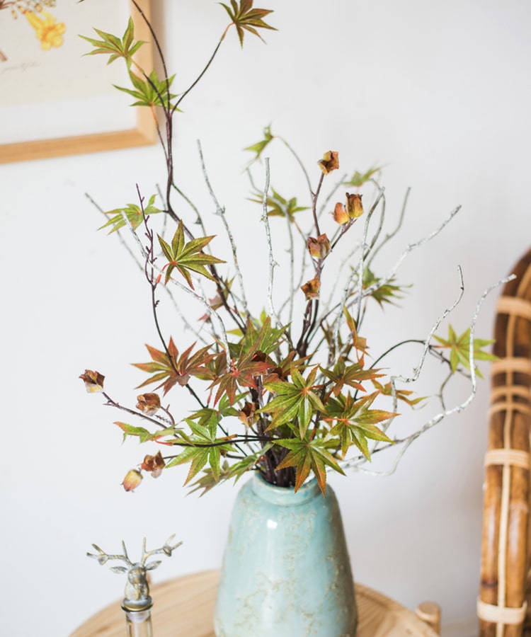 Iconic and symbolic, the maple leaf represents resilience and certitude. Applied to bare branch stems, these artificial maple leaves bring a sense of peace and zen to the home or office. Place the handmade fake leaf stalks in decorative pots, planters, jars, flower vases and more to decorate your personal sanctuary.