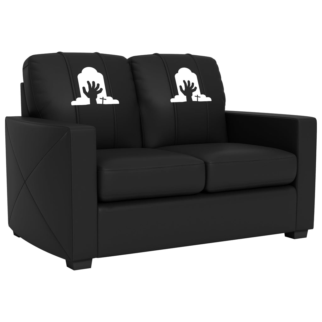 Silver Loveseat with Ghoulish Rising Hand Halloween Logo