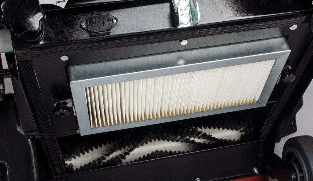 The sweeper cleans up to 64,500 sq ft per hour and has a large 9.25-gallon dustbin. This means you can quickly clean a lot of space and won’t have to stop often to empty the bin. The sweeper's power comes from batteries, so you can move freely without cords and clean for a long time on one charge.