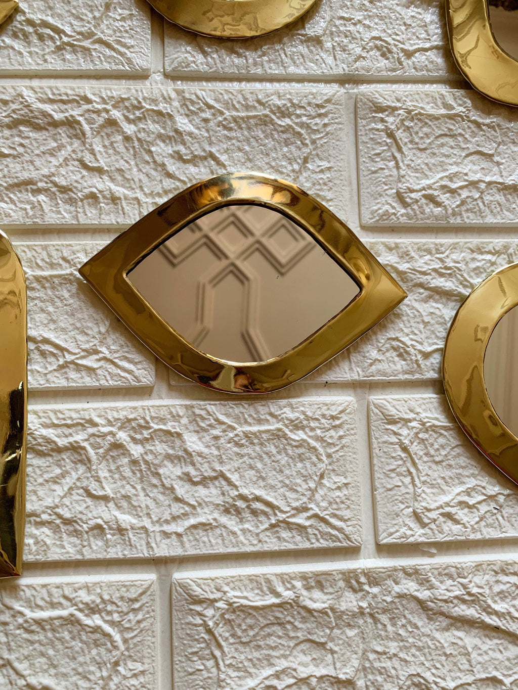 Set of 6 Moroccan Mirror, Gold Small Mirror, Handmade Mirror, Wall Mirror Decor, Brass Mirrors Arch Eye Squire Round Teardrop Mirror