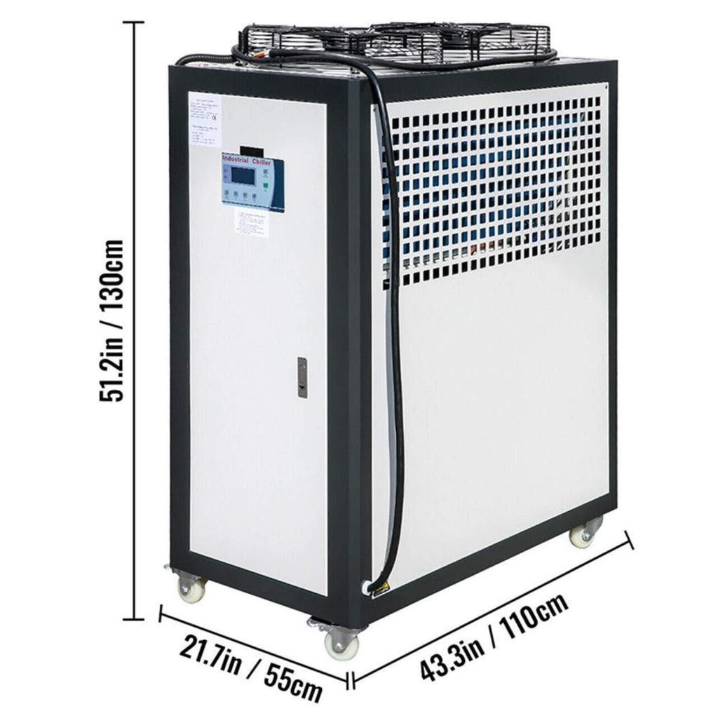 Keep your temperature-sensitive system running smoothly and efficiently with this Air-Cooled Industrial Chiller. With a digital LCD display and a water tank, you can easily monitor the cooling process while keeping your space cool and comfortable to stay in.