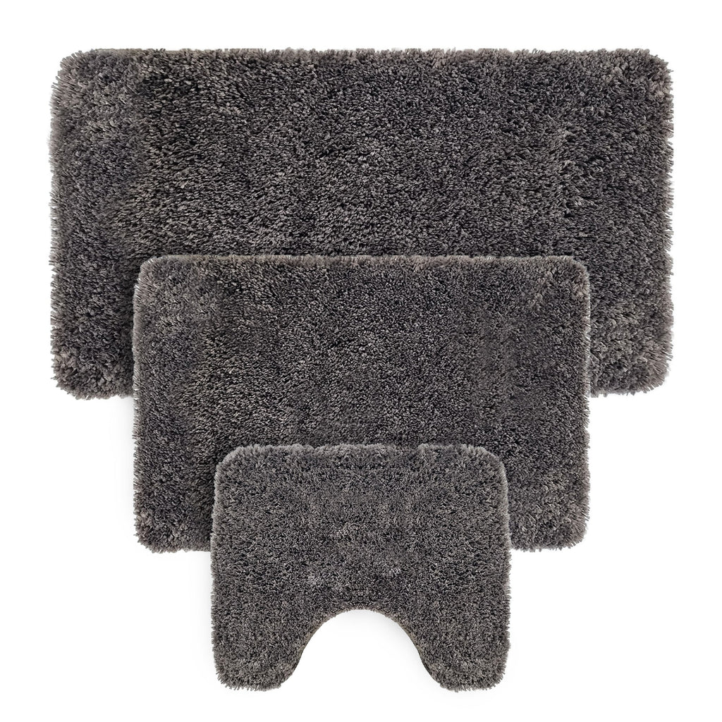 Solid Gray Bathroom Rugs Sets, Shower Rugs with Toilet Rugs U Shaped |Set of 3