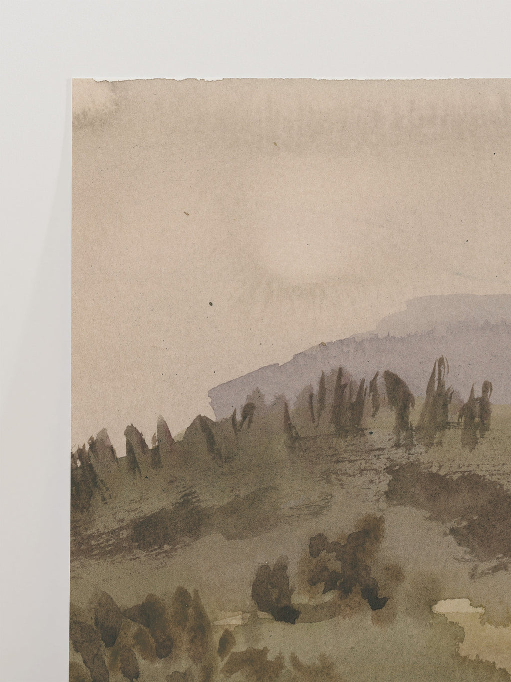 Whether it's the gentle sway of olive trees against the mountains or the contemplative gaze of a solitary figure, our Ink and Watercolor Drawings series captures the timeless allure of the Mediterranean with grace and elegance.