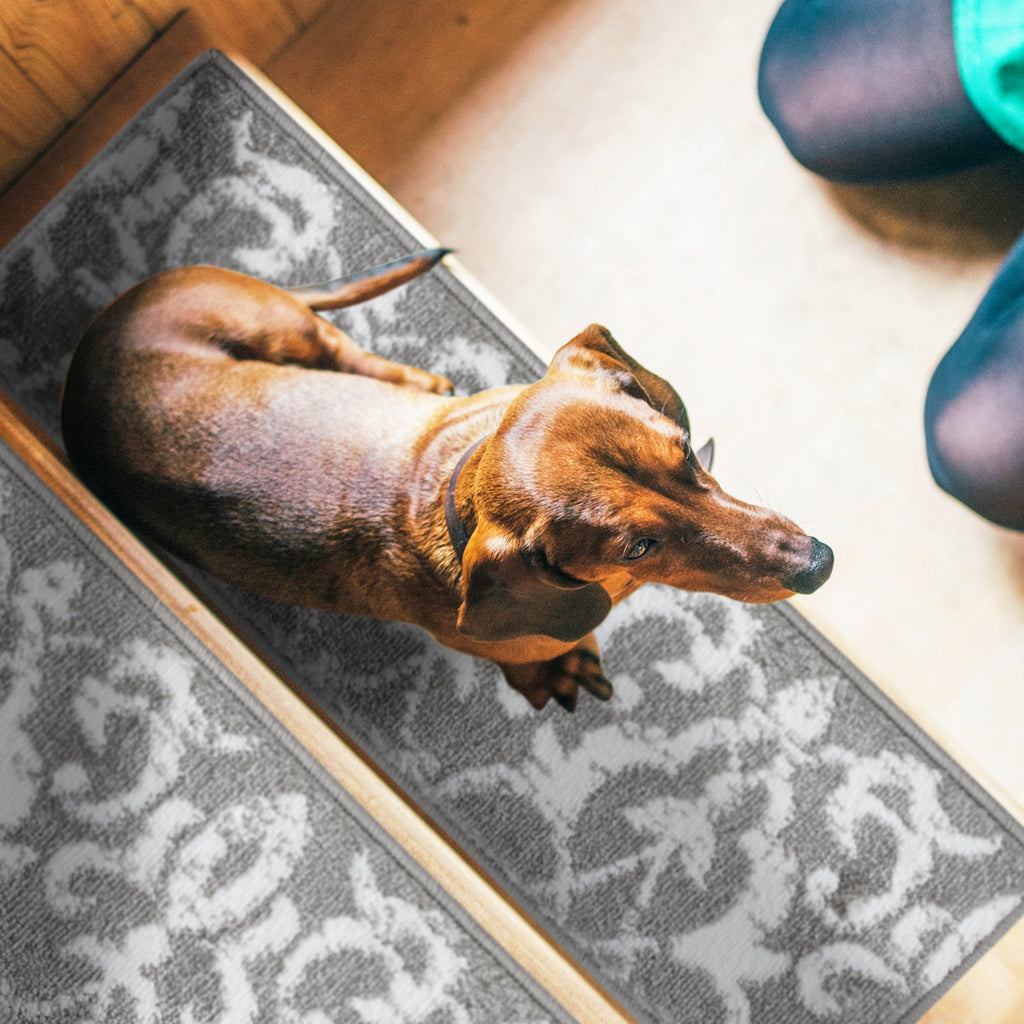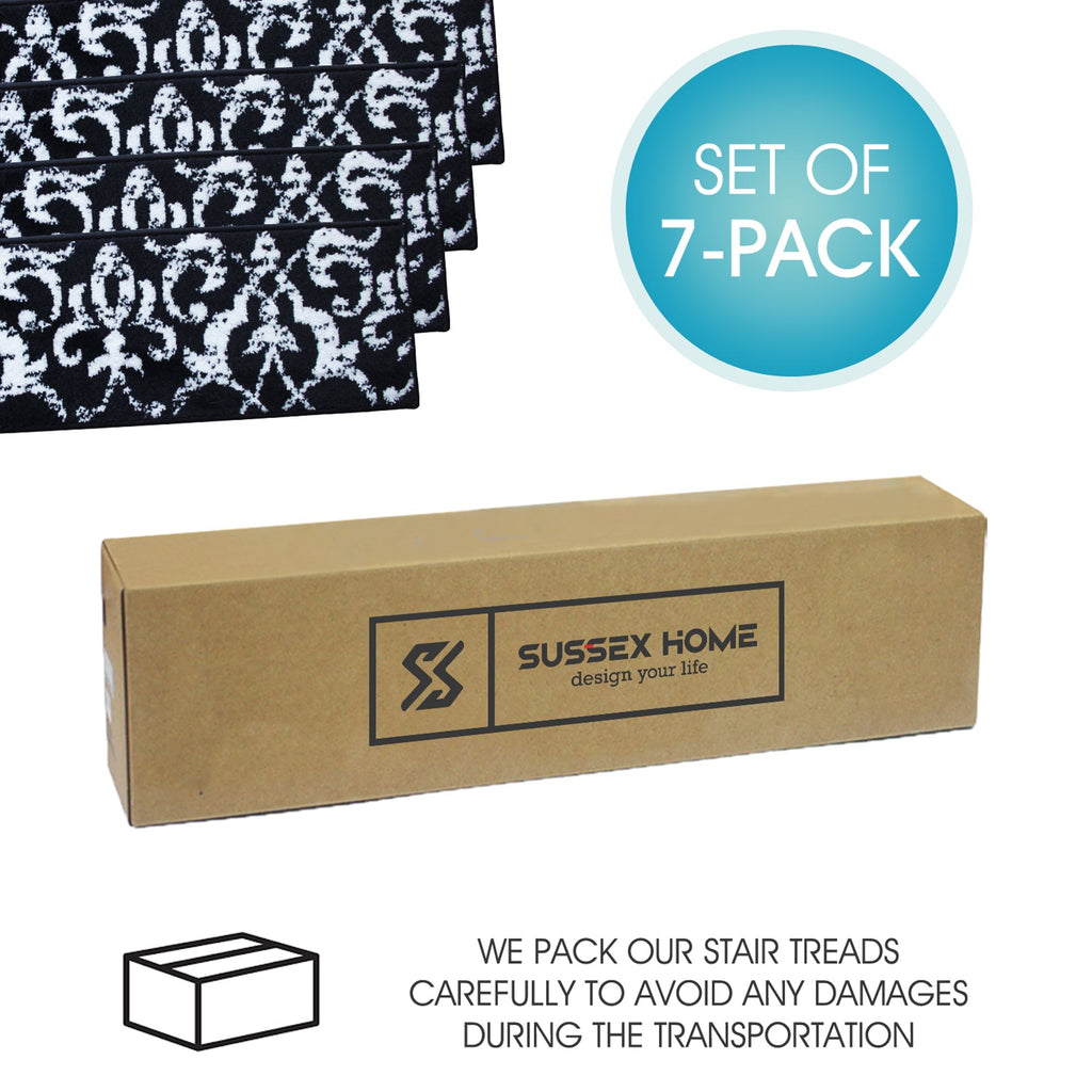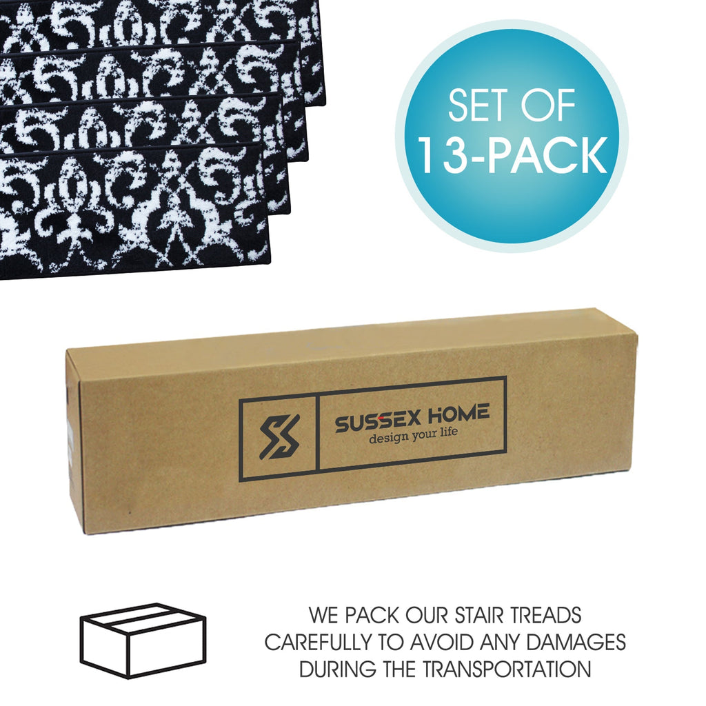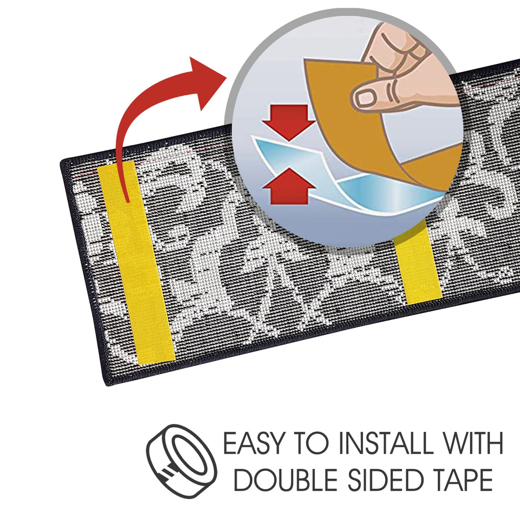• KID & PET FRIENDLY ****** Our elegantly designed and colored stair treads are made from original area rug and 100% POLYPROPYLENE to prevent shedding, and will tie together any fashionable space. Kids and pet friendly.