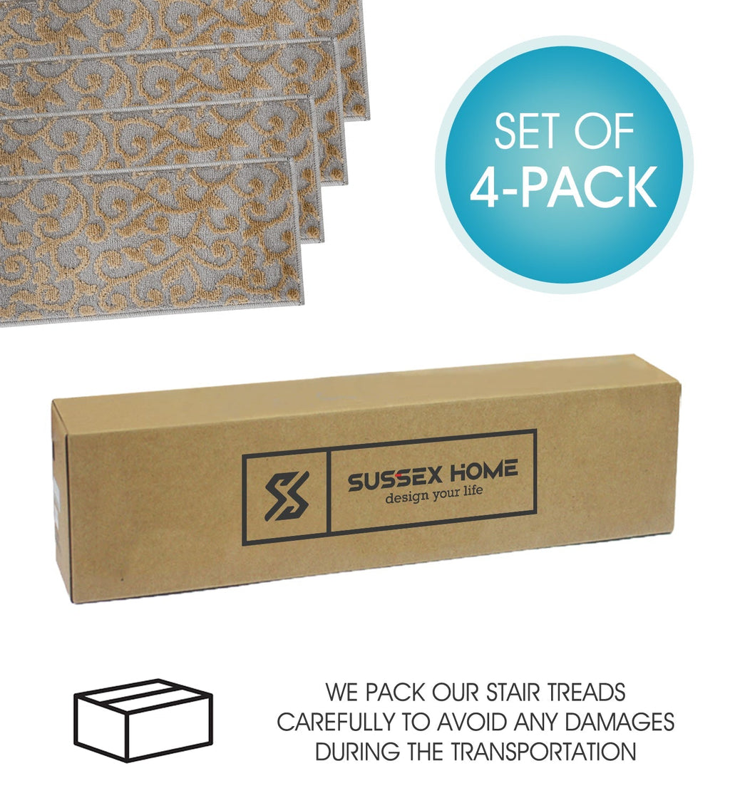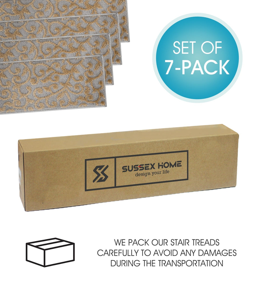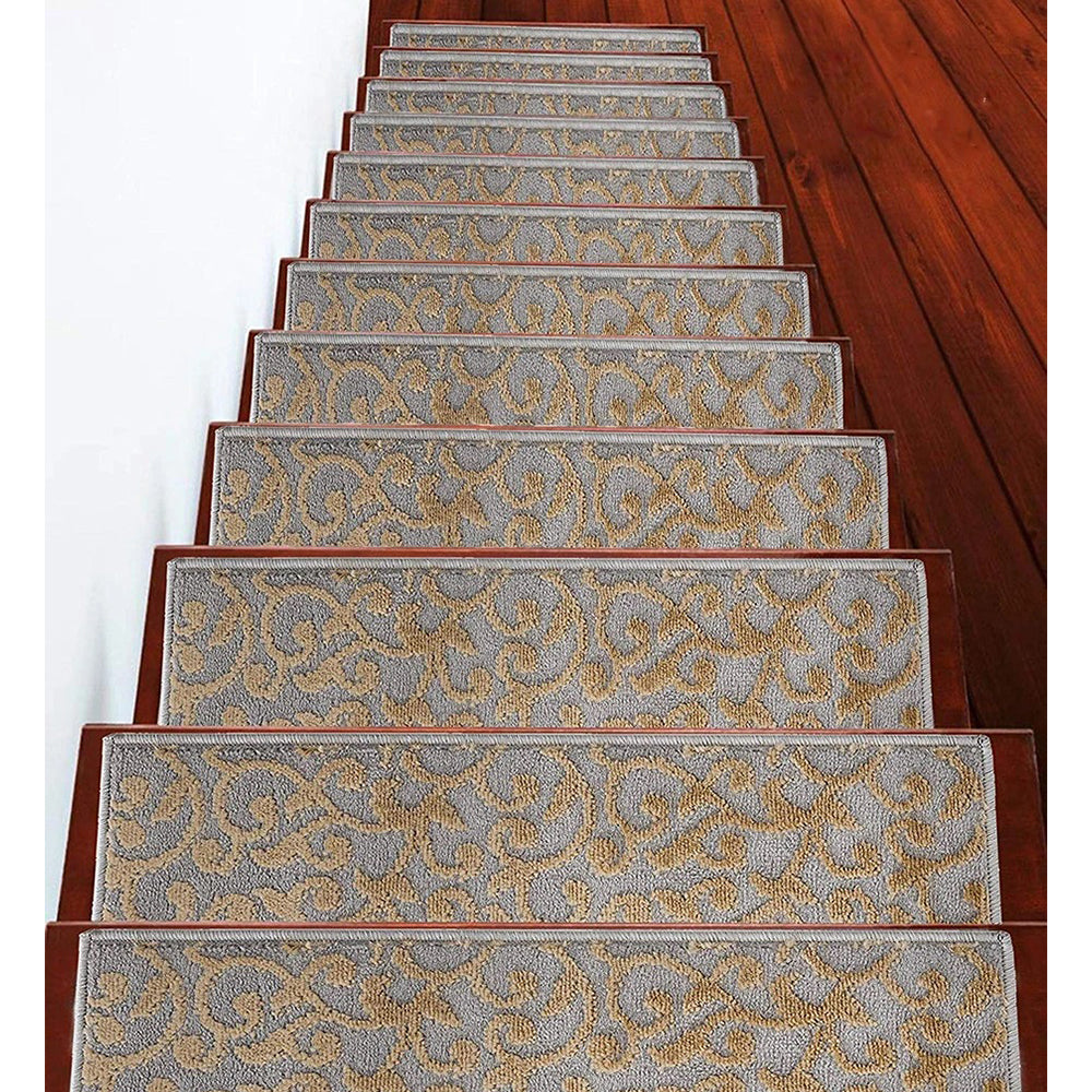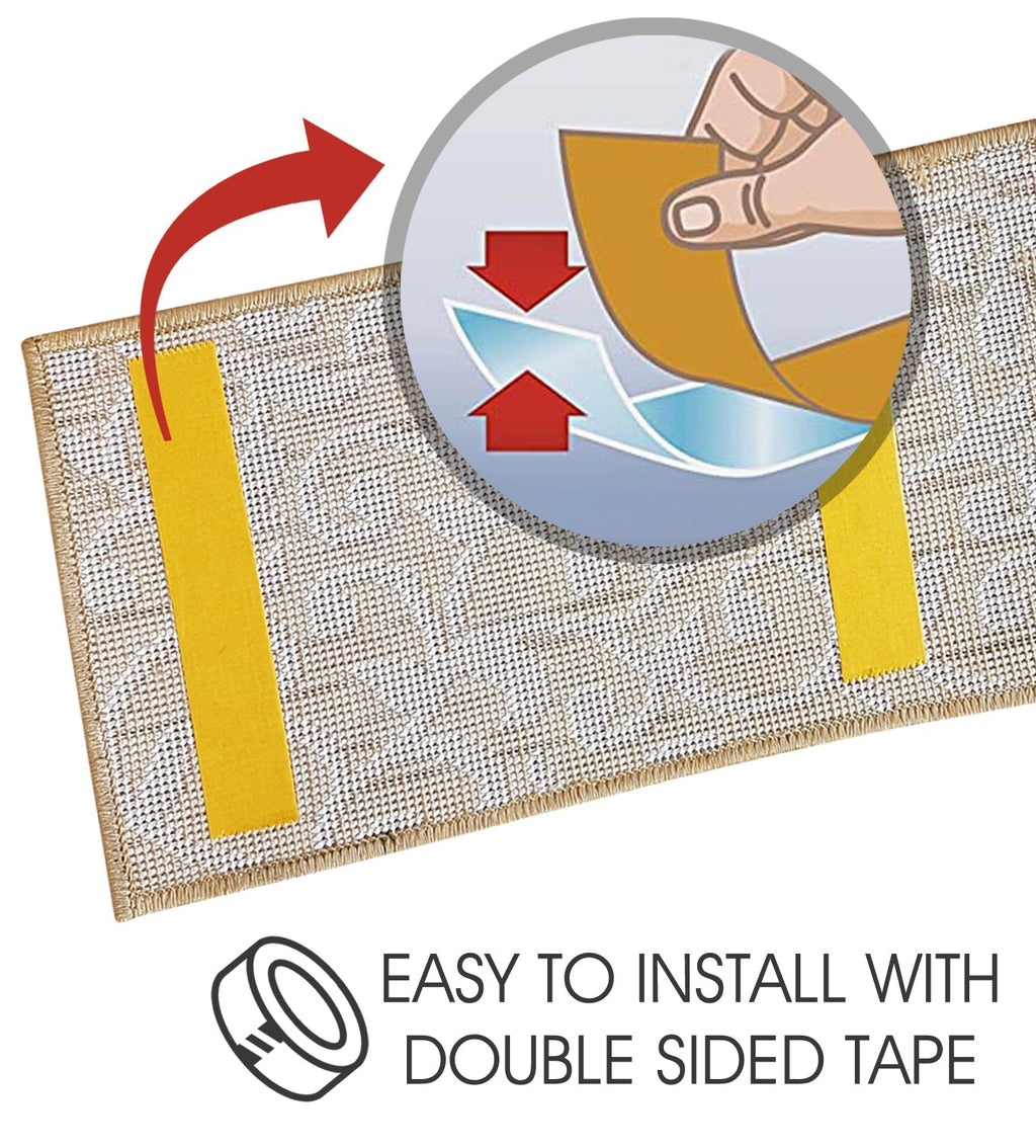 • KID & PET FRIENDLY ****** Our elegantly designed and colored stair treads are made from original area rug and 100% POLYPROPYLENE to prevent shedding, and will tie together any fashionable space. Kids and pet friendly.