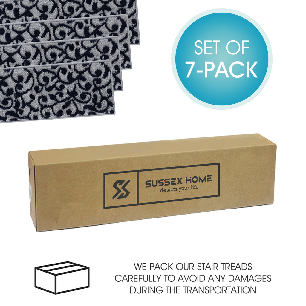 • KID & PET FRIENDLY ****** Our elegantly designed and colored stair treads are made from original area rug and 100% POLYPROPYLENE to prevent shedding, and will tie together any fashionable space. Kids and pet friendly.