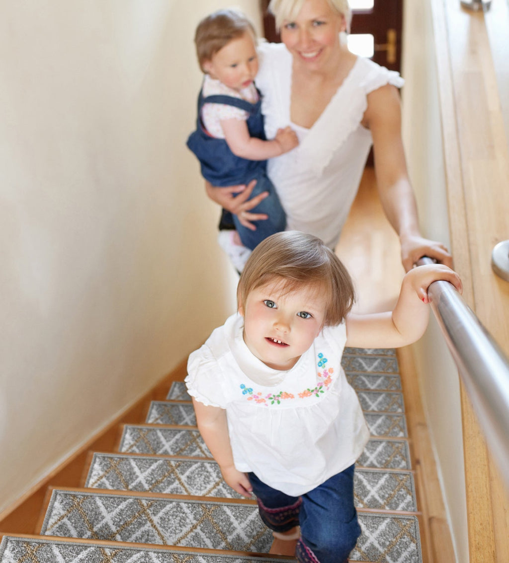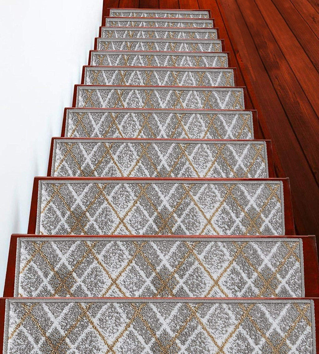 • KID & PET FRIENDLY ****** Our elegantly designed and colored stair treads are made from original area rug and 100% POLYPROPYLENE to prevent shedding, and will tie together any fashionable space. Kids and pet friendly.
