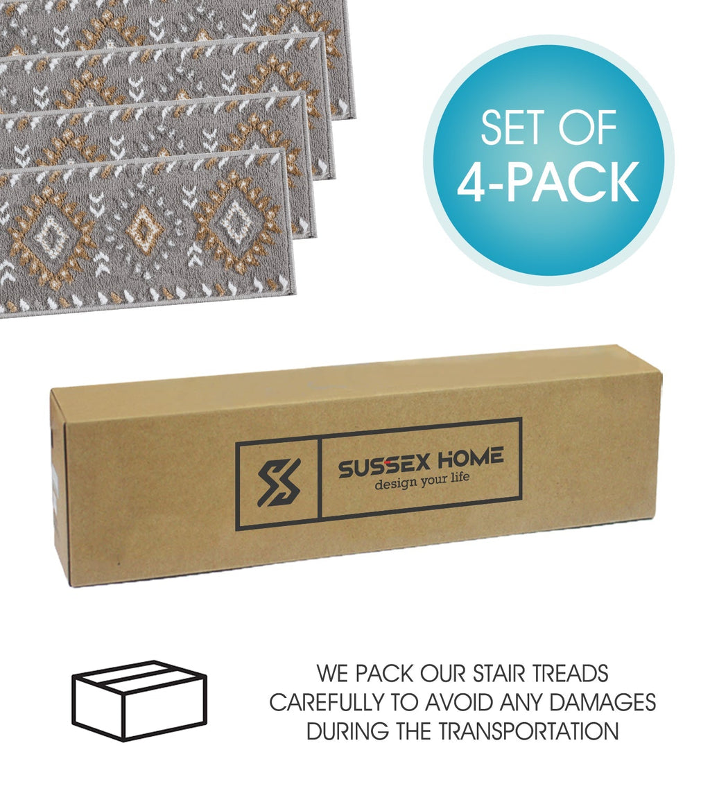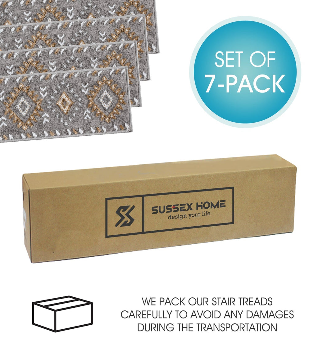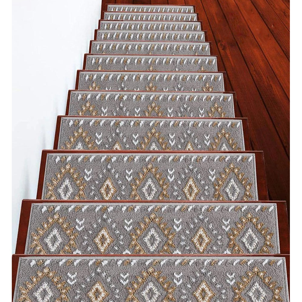 KID & PET FRIENDLY ****** Our elegantly designed and colored stair treads are made from original area rug and 100% POLYPROPYLENE to prevent shedding, and will tie together any fashionable space. Kids and pet friendly.