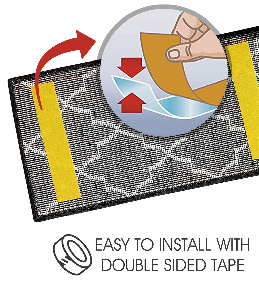 • KID & PET FRIENDLY ****** Our elegantly designed and colored stair treads are made from original area rug and 100% POLYPROPYLENE to prevent shedding, and will tie together any fashionable space. Kids and pet friendly.