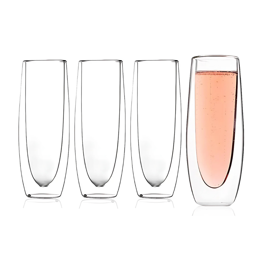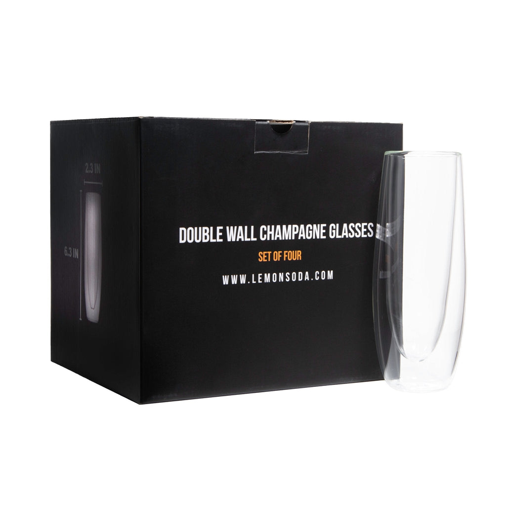 Experience elegance and sophistication with the LEMONSODA Double Wall Champagne Glasses, meticulously crafted with a luxurious double-walled design that provides exceptional insulation while beautifully showcasing the effervescence and vibrant hues of your favorite bubbly. With a perfect capacity of 5.4 fl. oz (160 mL), these crystal-clear glasses are ideal for toasting life’s special moments—whether at an intimate celebration, lively party, or a refreshing summer gathering. Their timeless style makes them an exquisite gift for champagne lovers and those with refined taste.