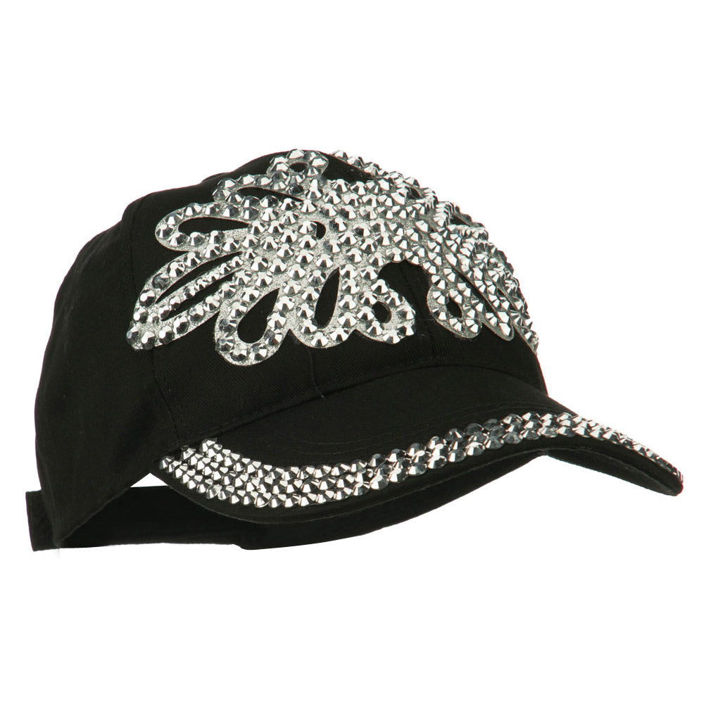 Bill Details, Top of Bill Edge Decorated in Rhinestones, Stiff and Slightly Precurved, Same Color Under Bill