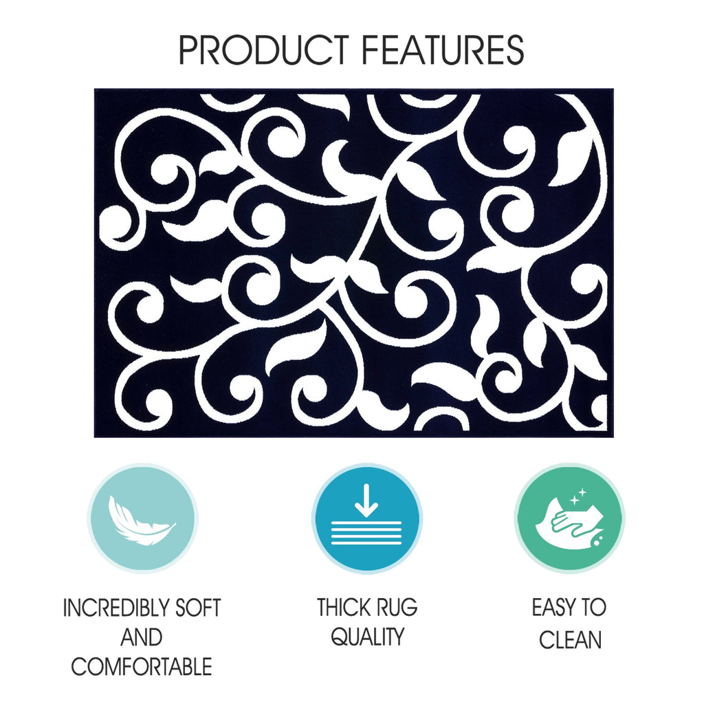 Sussex Home, Landing Rug, Slip Resistant Indoor Carpets Includes Adhesive Tape 2' x 3'-Floral Collection |Navy&White