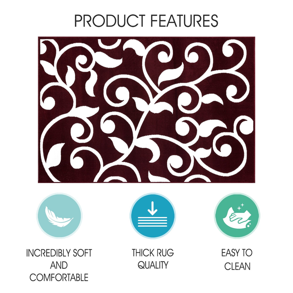 Sussex Home, Landing Rug, Slip Resistant Indoor Carpets Includes Adhesive Tape 2' x 3'-Floral Collection |Red&White