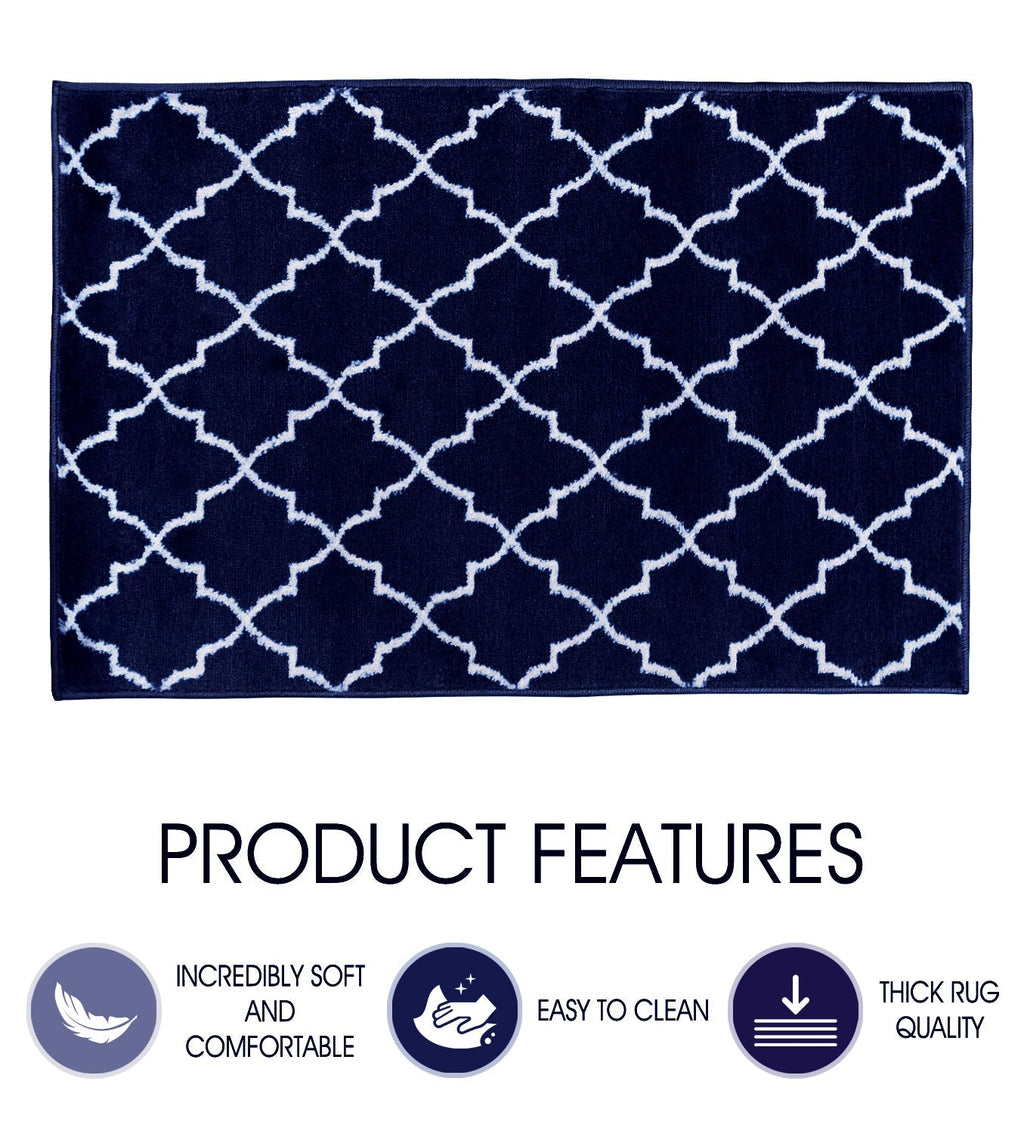 Sussex Home, Landing Rug, Slip Resistant Indoor Carpets Includes Adhesive Tape 2' x 3'-Trellisville Collection | Navy&White