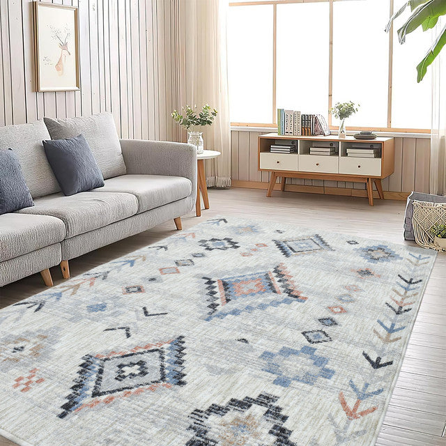 The rug stands out with its practical qualities: it's stain-resistant, water repellent, and maintains its color, making upkeep simple and suitable for active homes. The washable feature is a standout, ensuring effortless cleaning for daily life.