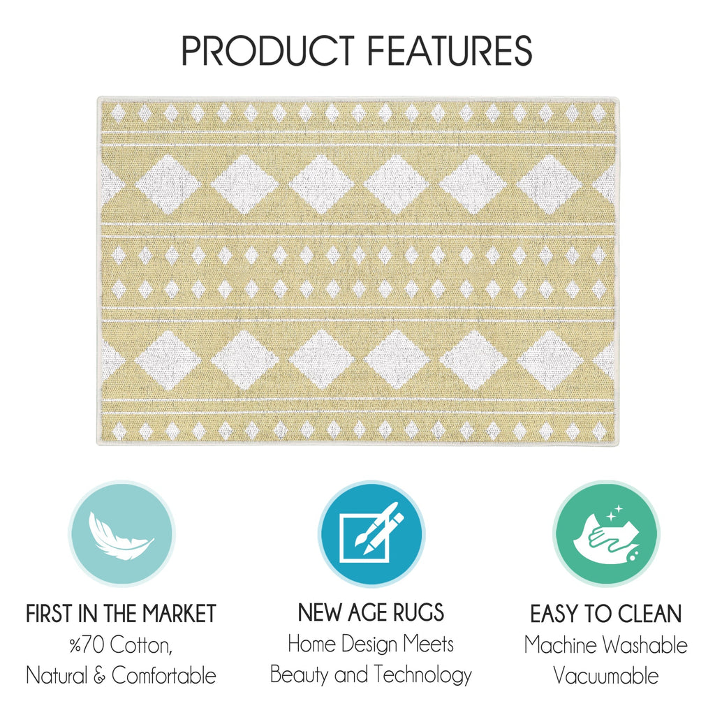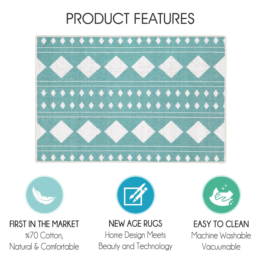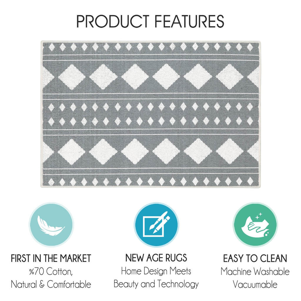Lightweight, soft to touch, and durable, 70% cotton and 30% polyester material of this lattice area rug is full of advantages and practical convenience.