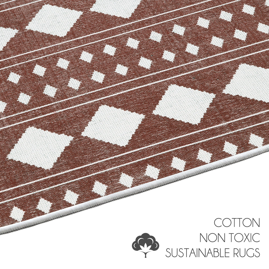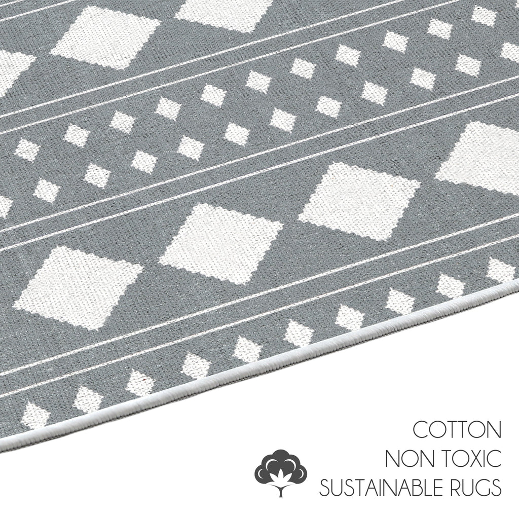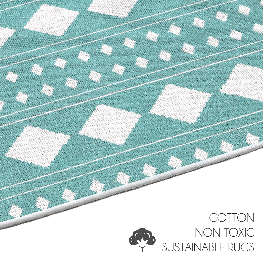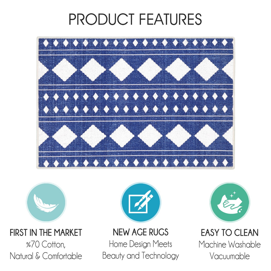 Lightweight, soft to touch, and durable, 70% cotton and 30% polyester material of this lattice area rug is full of advantages and practical convenience.