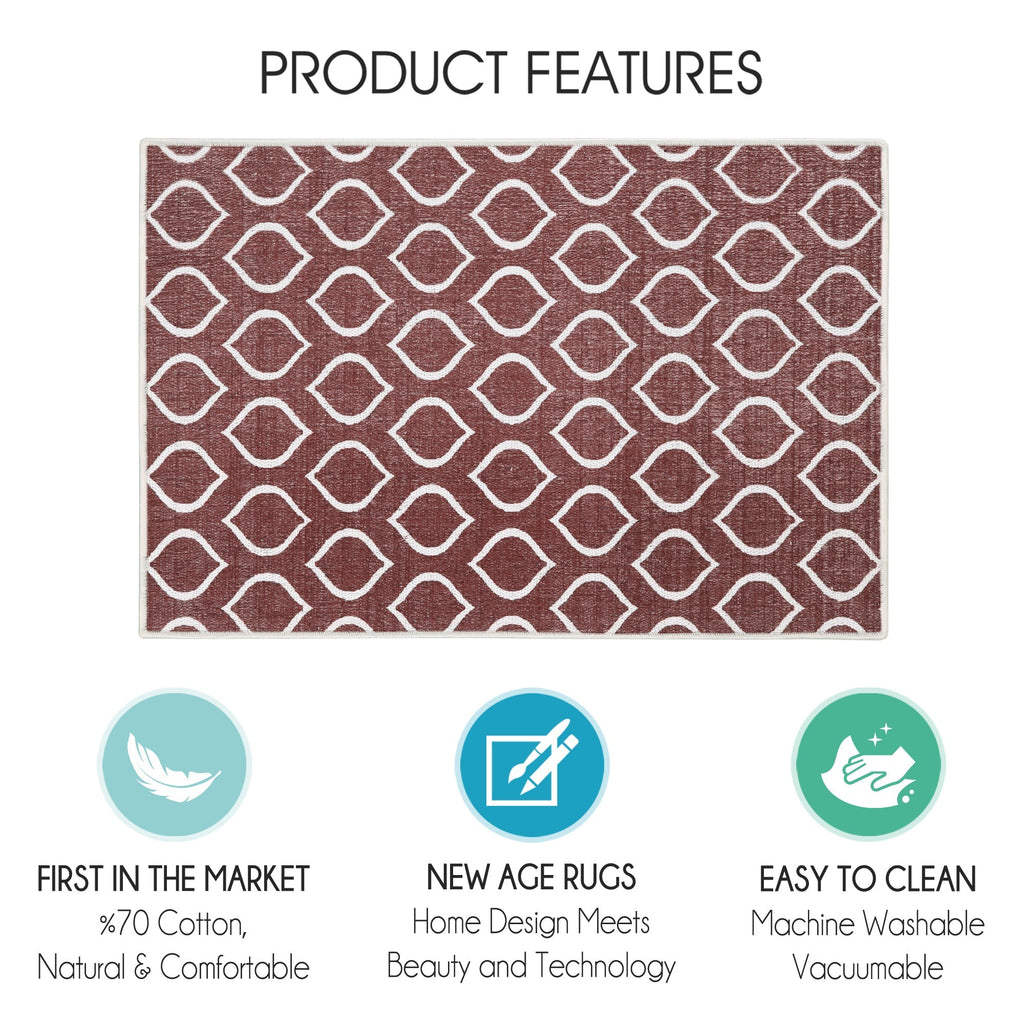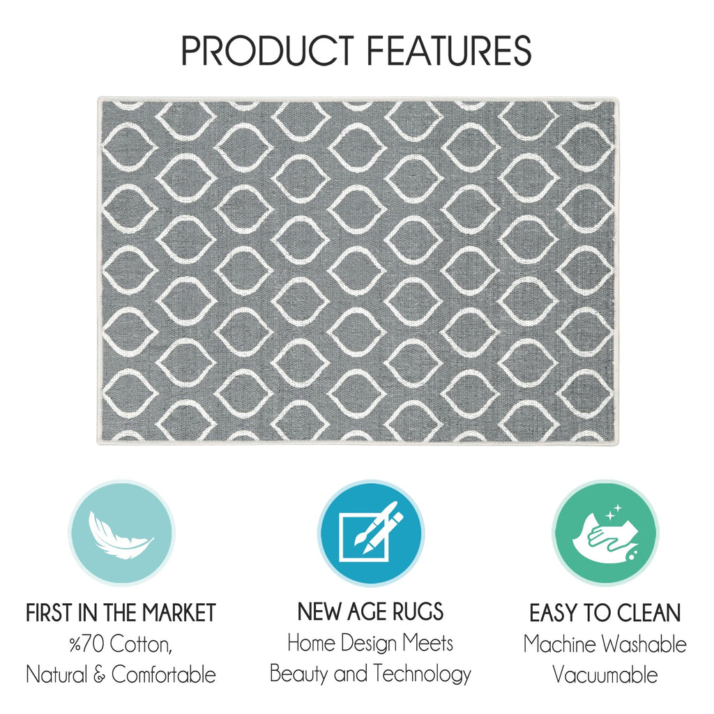 Lightweight, soft to touch, and durable, 70% cotton and 30% polyester material of this lattice area rug is full of advantages and practical convenience.