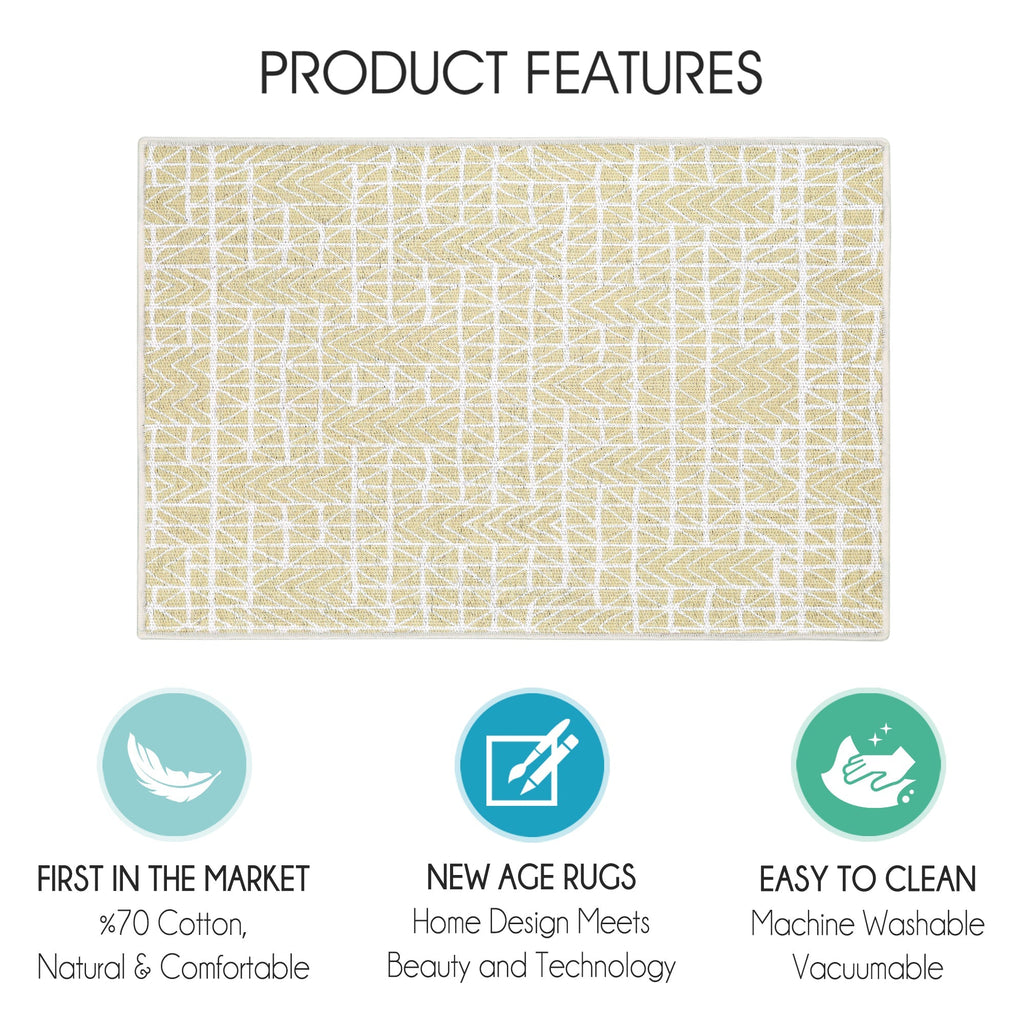 Lightweight, soft to touch, and durable, 70% cotton and 30% polyester material of this lattice area rug is full of advantages and practical convenience.