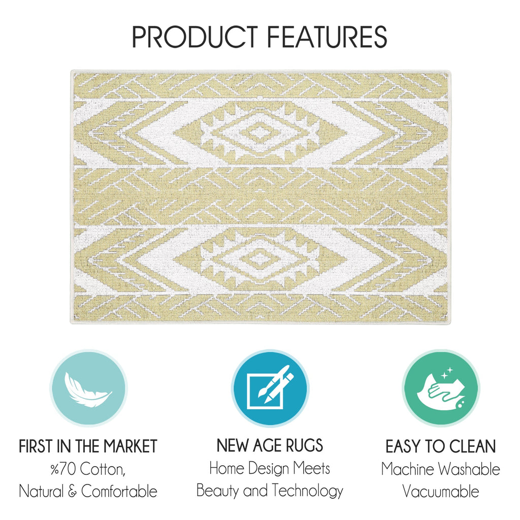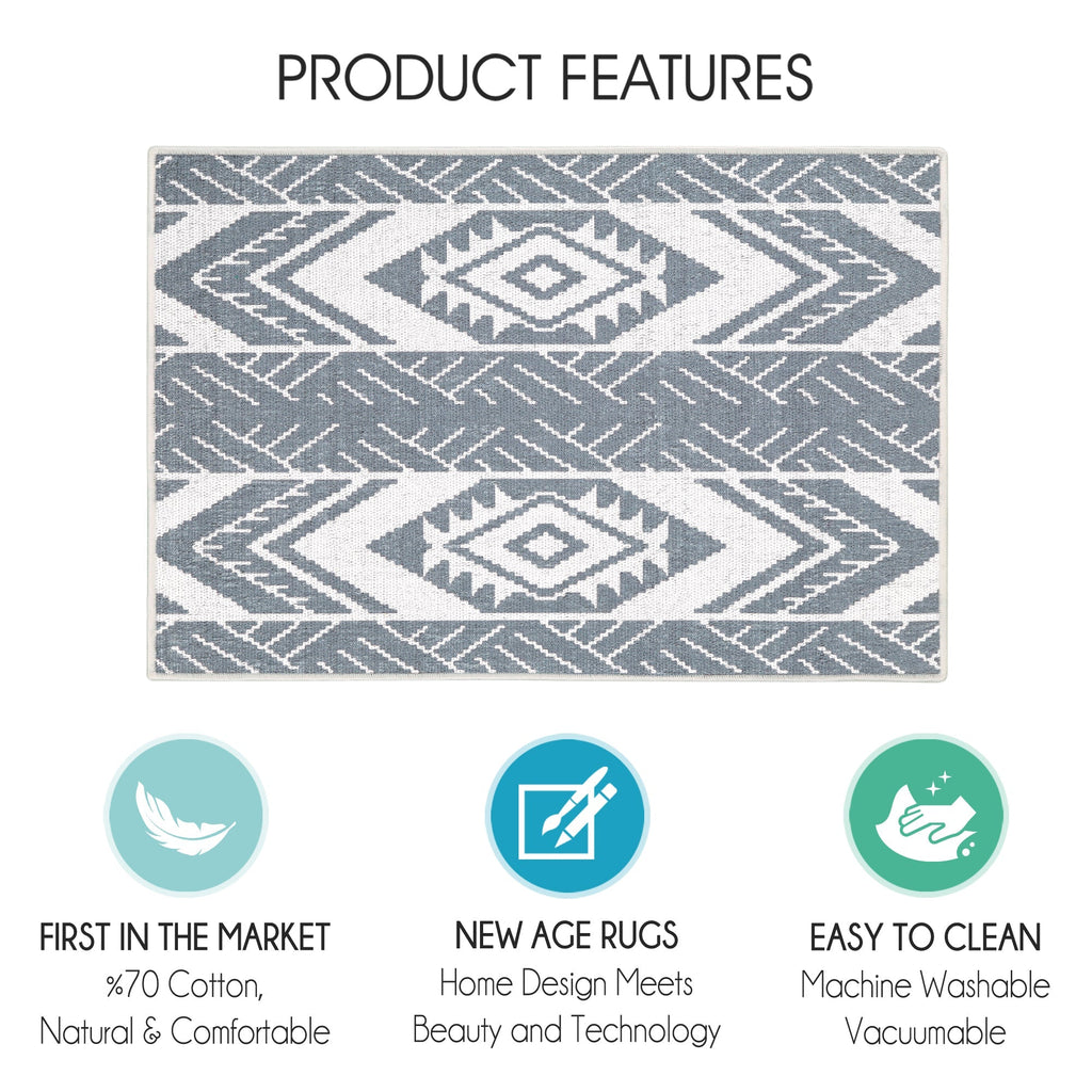 Lightweight, soft to touch, and durable, 70% cotton and 30% polyester material of this lattice area rug is full of advantages and practical convenience.