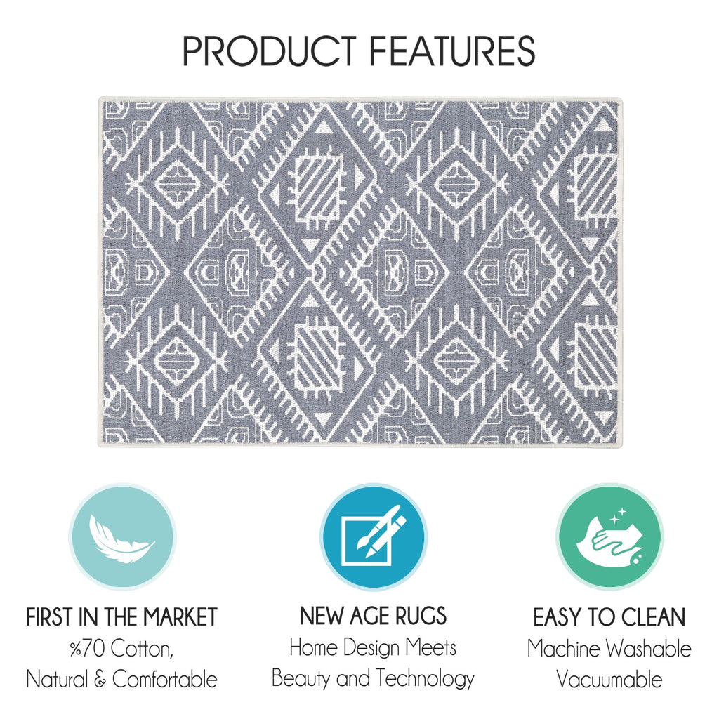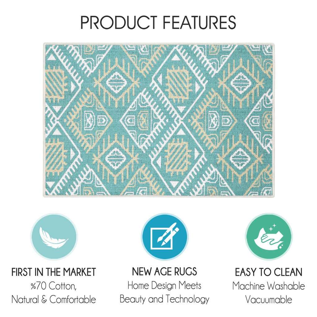 Lightweight, soft to touch, and durable, 70% cotton and 30% polyester material of this lattice area rug is full of advantages and practical convenience.