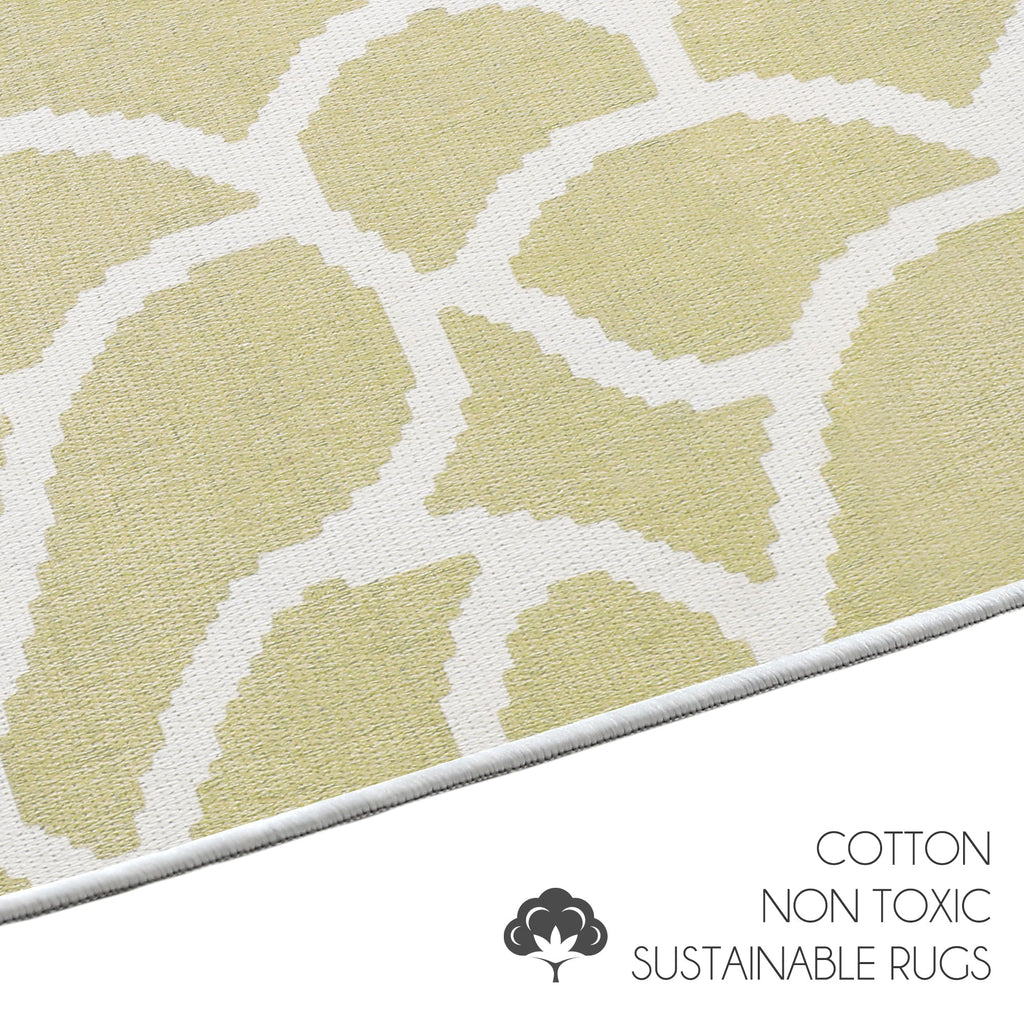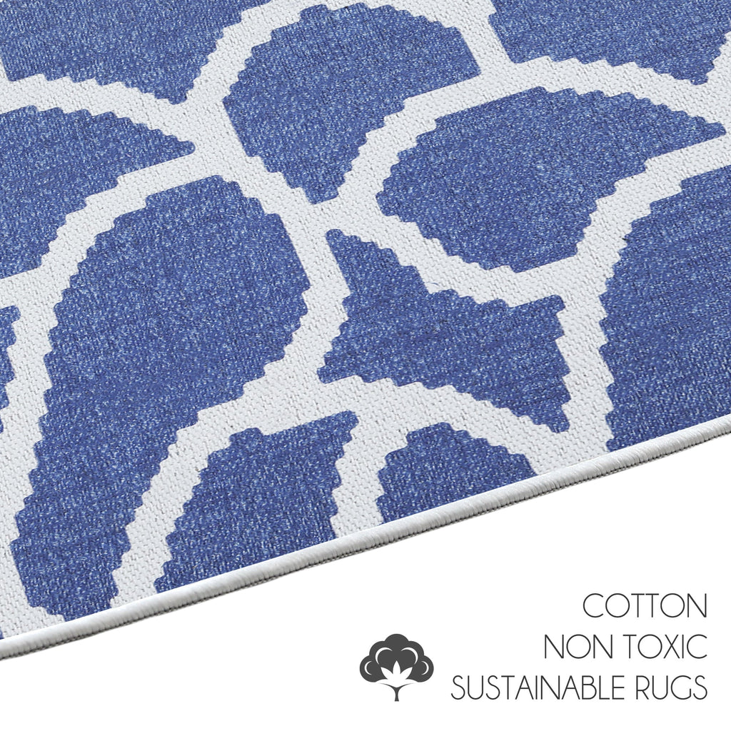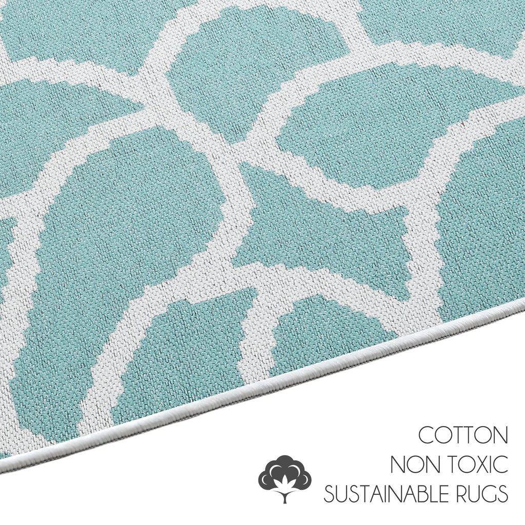 Lightweight, soft to touch, and durable, 70% cotton and 30% polyester material of this lattice area rug is full of advantages and practical convenience.