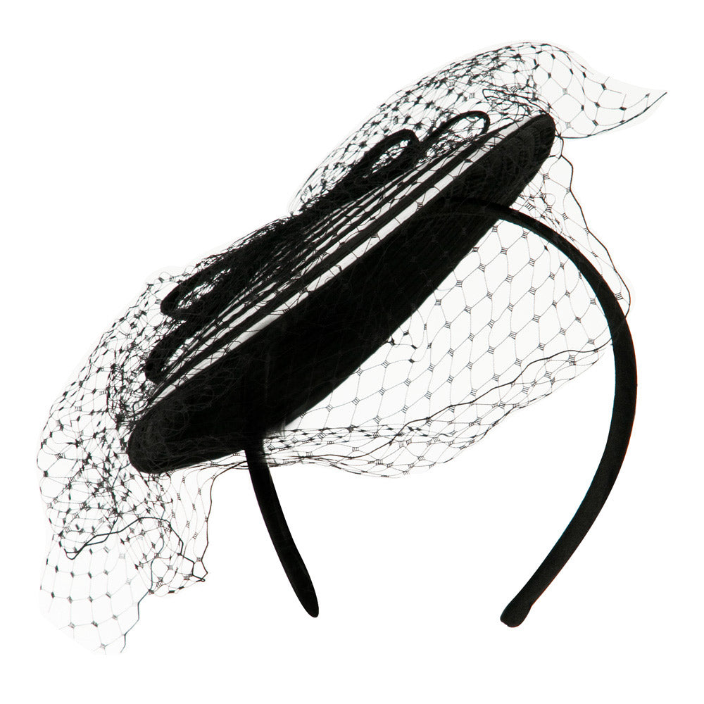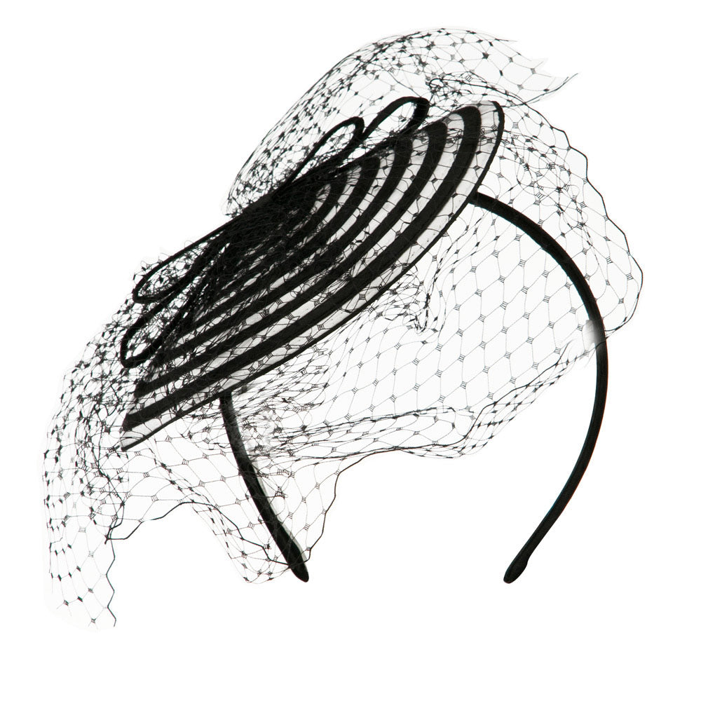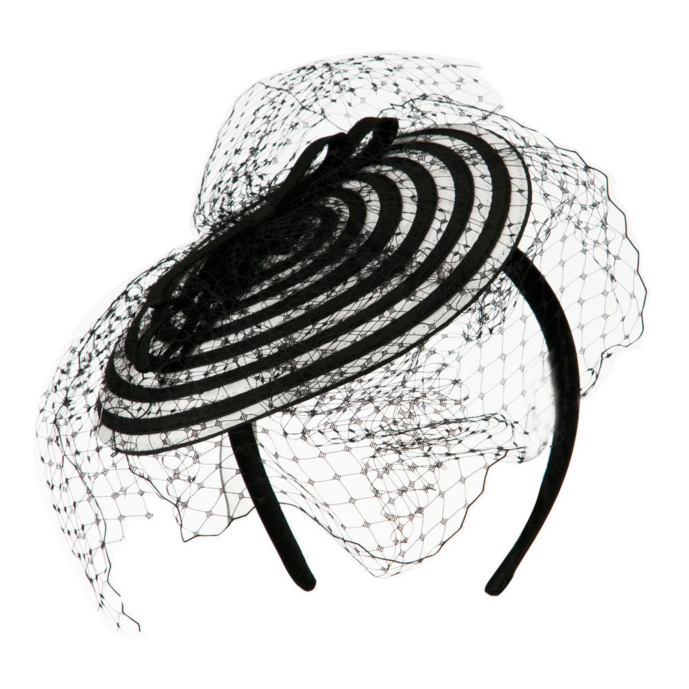 Construction, Attached to a sturdy satin headband, swirl pattern dish design