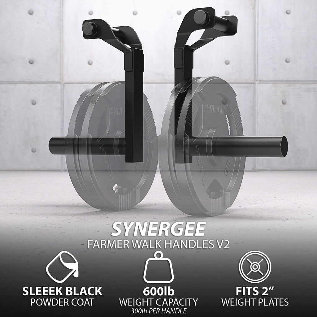Synergee Farmer Walk Handles have a 600lb weight capacity: yes, these handles are small & mighty! They are perfect for high-capacity athletes looking to get an awesome piece of equipment without creating clutter in their gym.