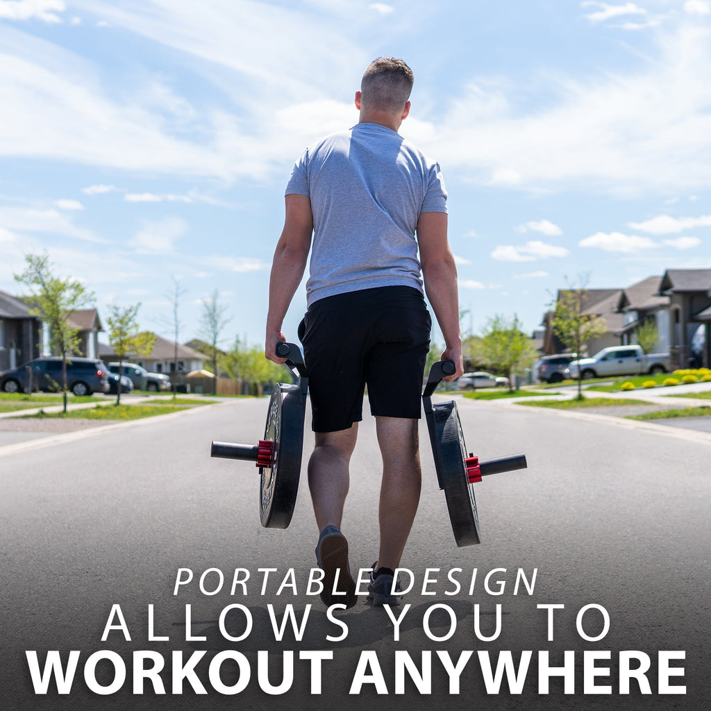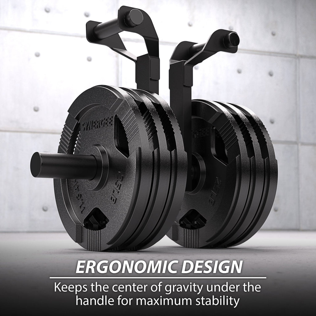 Our Synergee Compact Farmers Walk Handles will work your glutes, quads, calves, back, shoulders, core, and forearms all at once! These handles are compact, easy to use, and with 9 inches of loadable sleeve you can carry some mean weight!