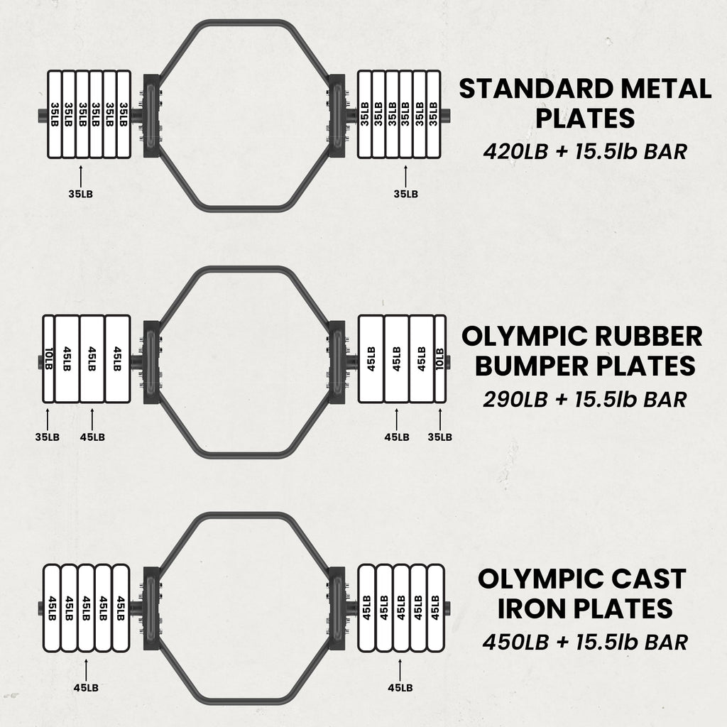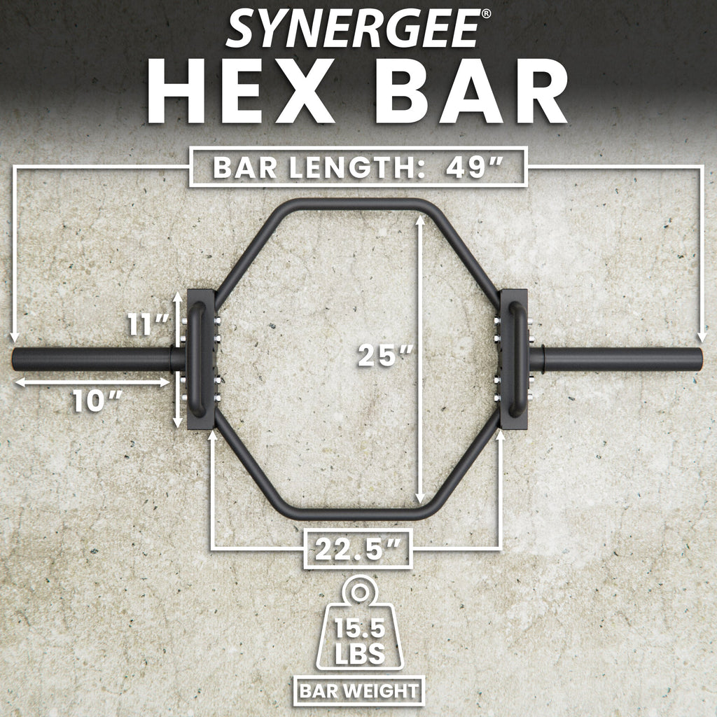 Our Synergee Hex Bar allows you to deadlift with confidence. The hexagonal frame is ergonomically designed to allow for a linear bar path and keep the weight centered with the body’s midline during lifts. This helps you avoid straining your lumbar spine and targets your quadriceps. With the Hex Bar, there is less space for injury and more space for gains when you are deadlifting, shrugging, and pulling compared to the standard barbell.