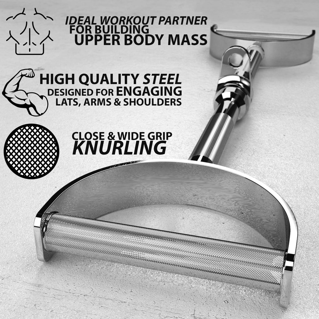 Upgrade your cable machine workouts with the Synergee Pro Lat Bar, designed for smooth performance, comfort, and long-term durability. Whether you’re training back, arms, shoulders, or core, this lat bar delivers consistent control and a secure grip through every rep.