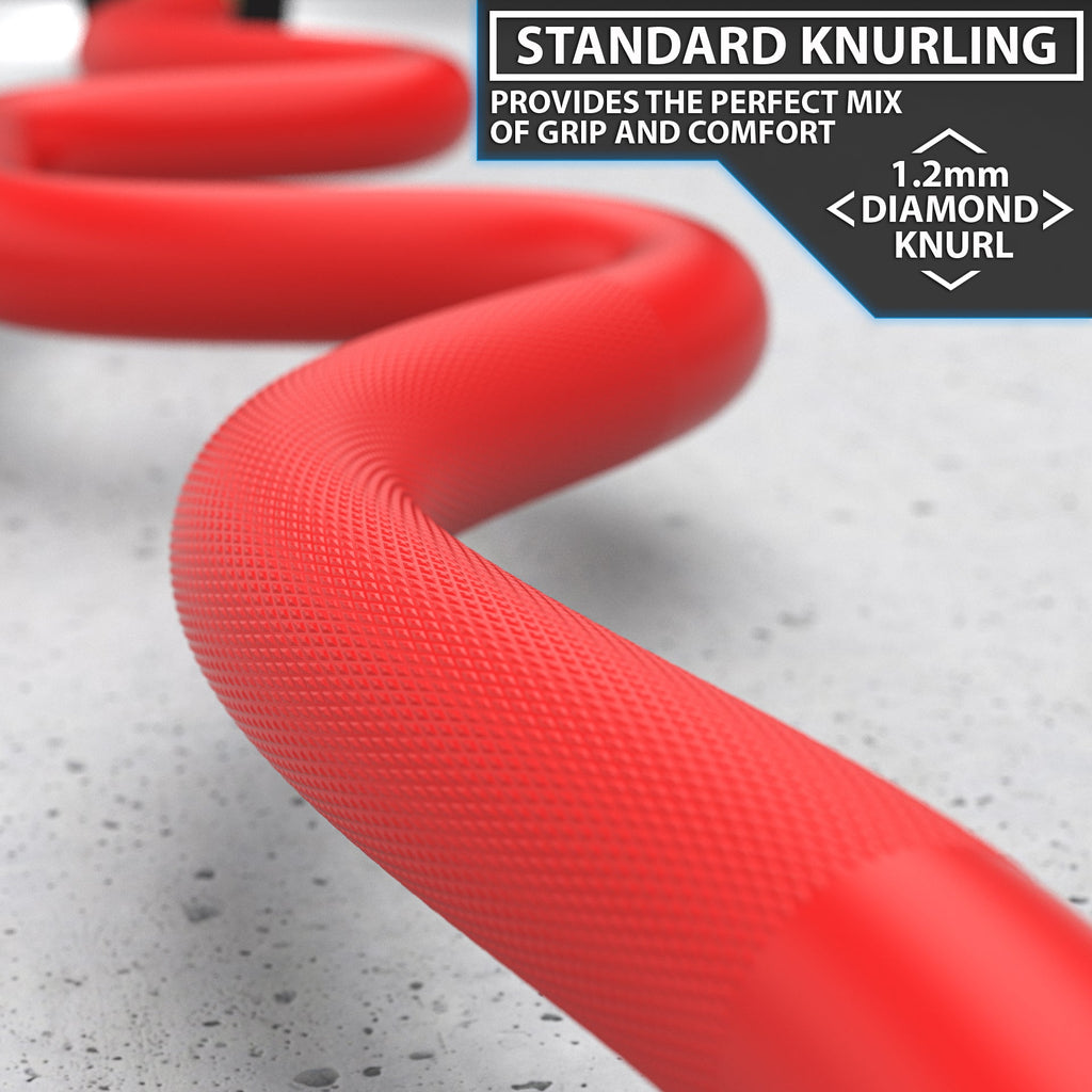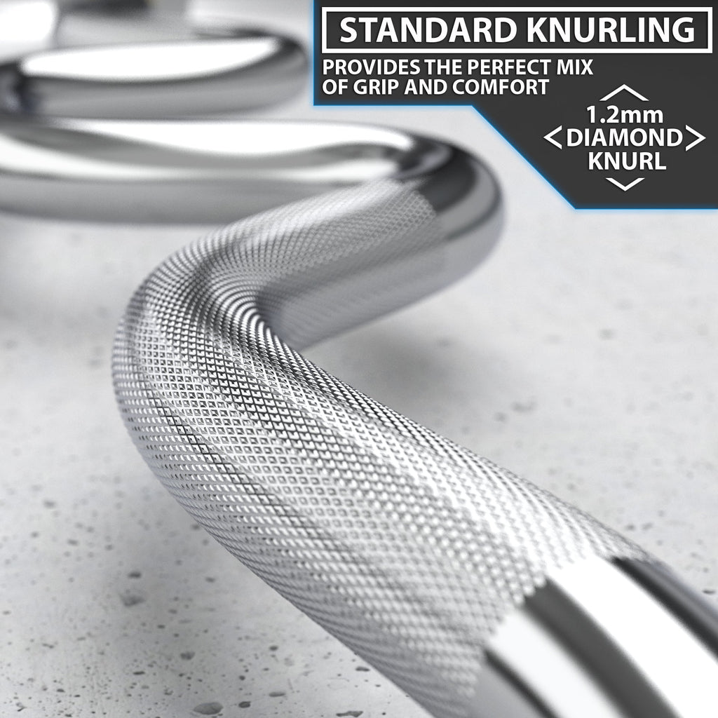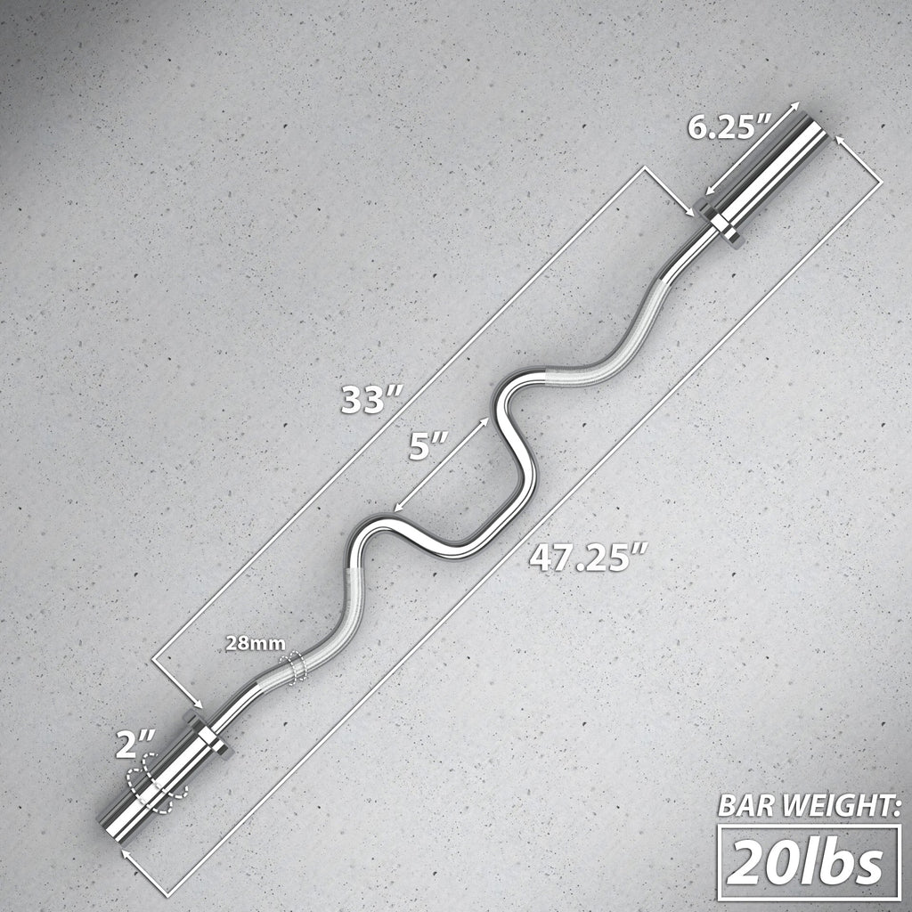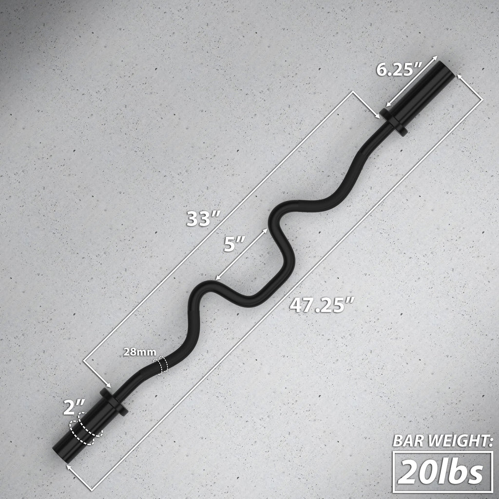 The Super Curl bar has more aggressive angles than our EZ Curl Bar; but all the same, high quality materials and attention to design and details. This 20lb, 47.2” long, 28mm diameter bar has a 400lb capacity and standard knurl. Load it up, hold on tight, and get curlin’. Each sleeve has 6.25 inches of loadable length and is 2” in diameter to suit all your standard weight plates.