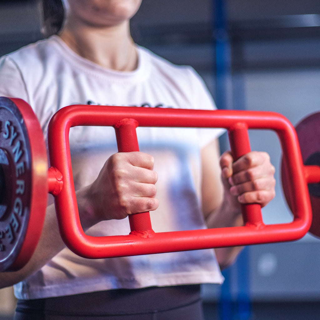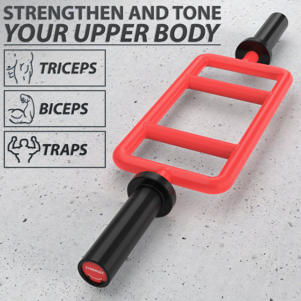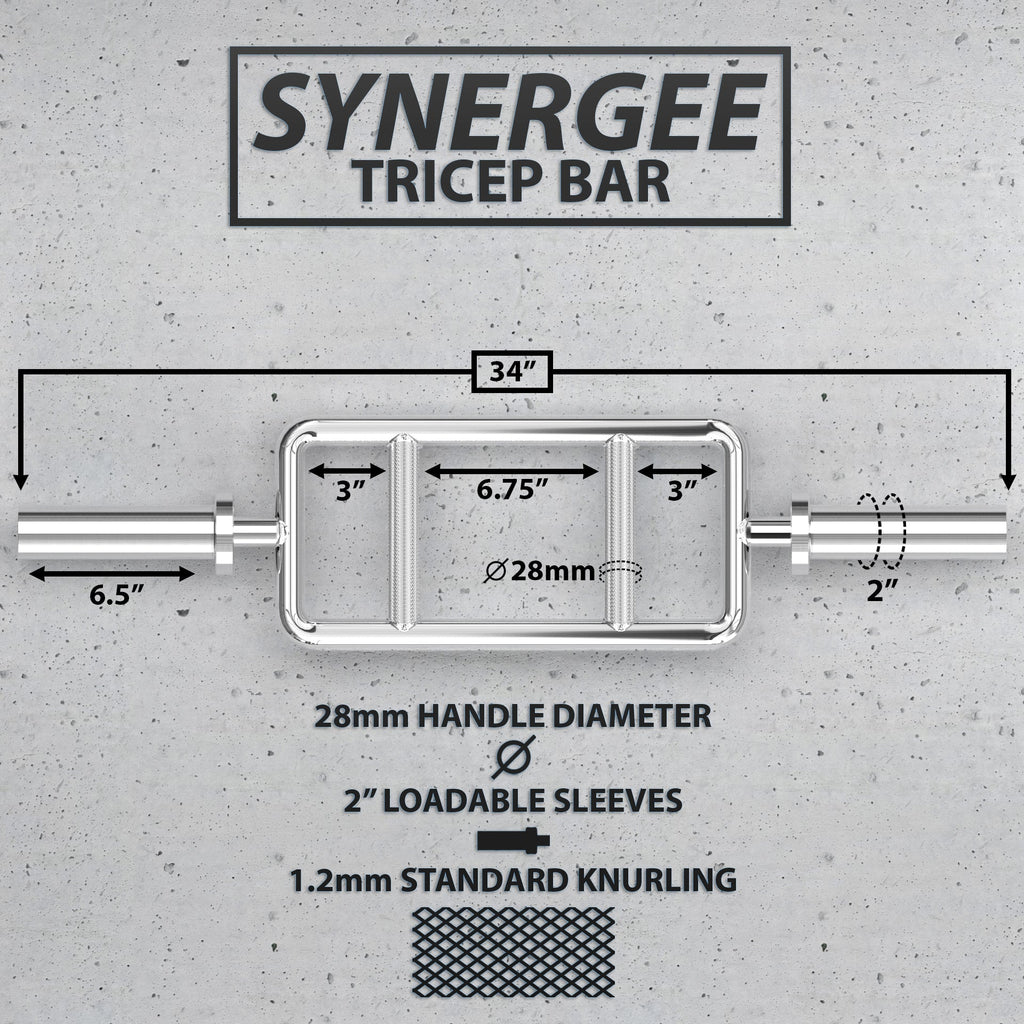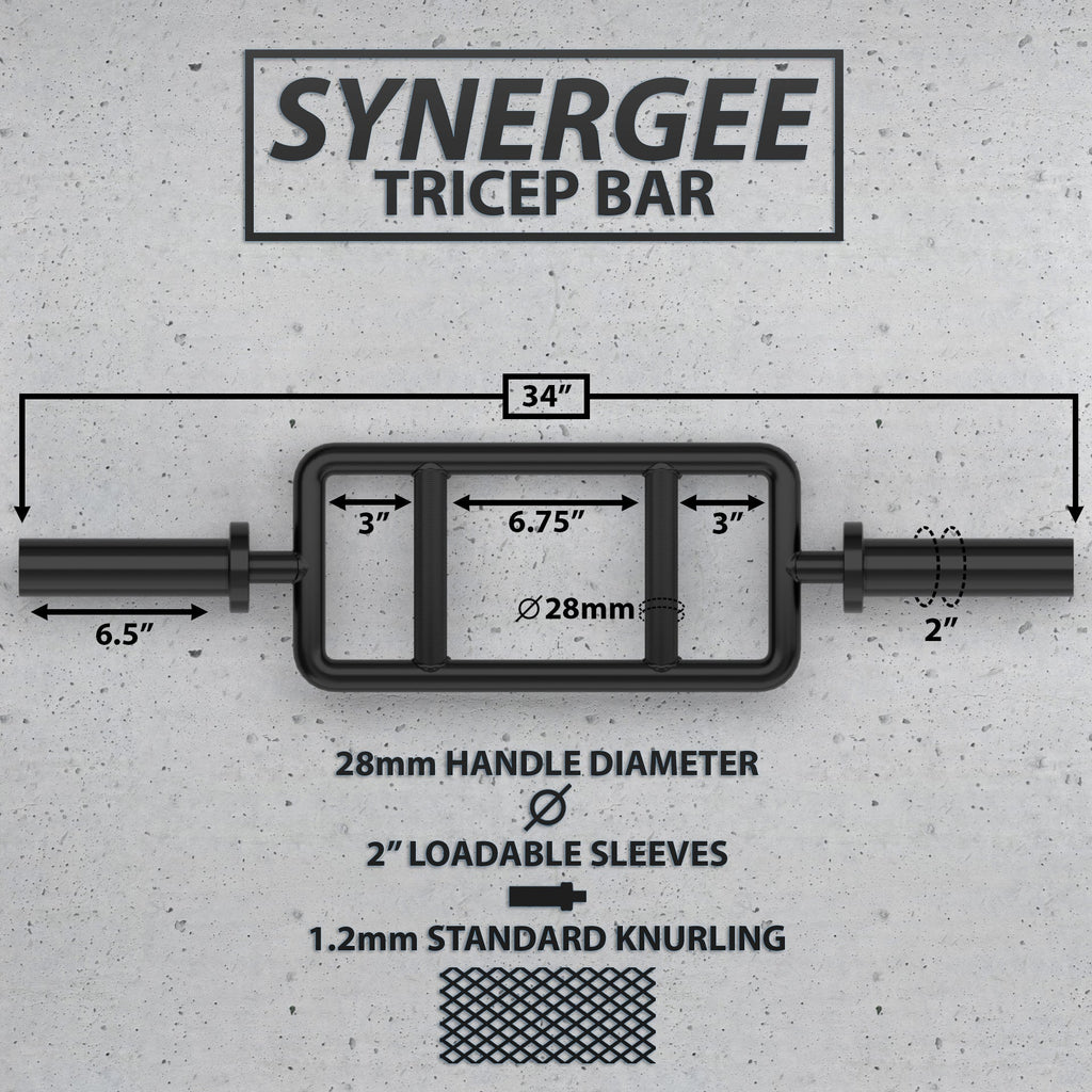 The Synergee Tricep Bar is an ergonomic dream for anyone looking to target and strengthen their upper body! While this bars main use is targeting your triceps, it can also hit your biceps, anterior deltoids, chest, and more!