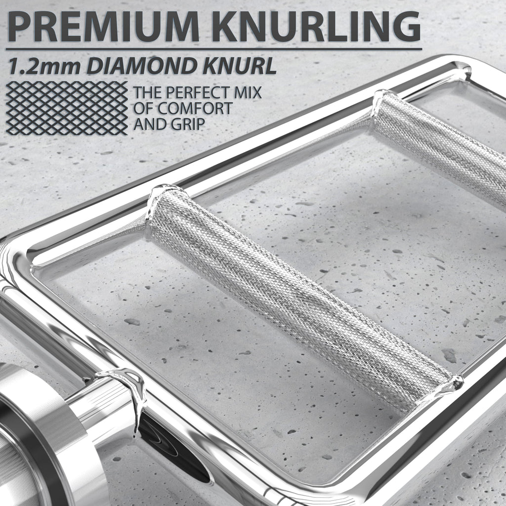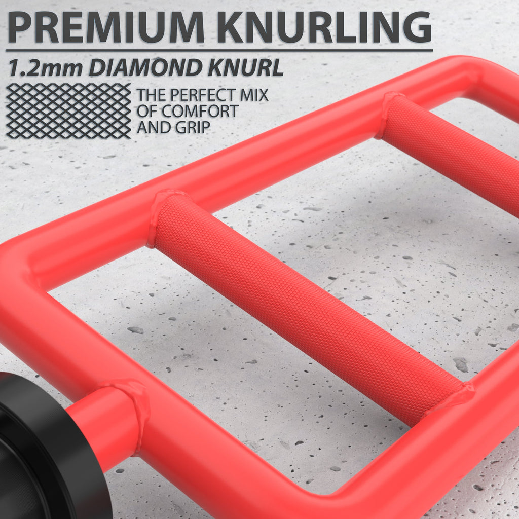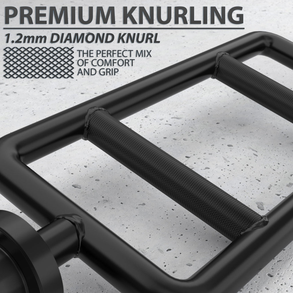 The Tricep Bar is different from any other bar we sell because of its vertical grips. The rectangular frame has two parallel grips running crosswise to provide the perfect positioning for Tricep Extensions, Bench Presses or many other exercises. Grips are embossed with medium-depth knurling to help with grip. The rotating sleeves allows the weights to rotate as you move through your exercises, adding to the ease of use. And the entire piece of gear is welded with precision and the utmost attention to detail, giving it a long lifespan that will help you get ALL THE GAINS!